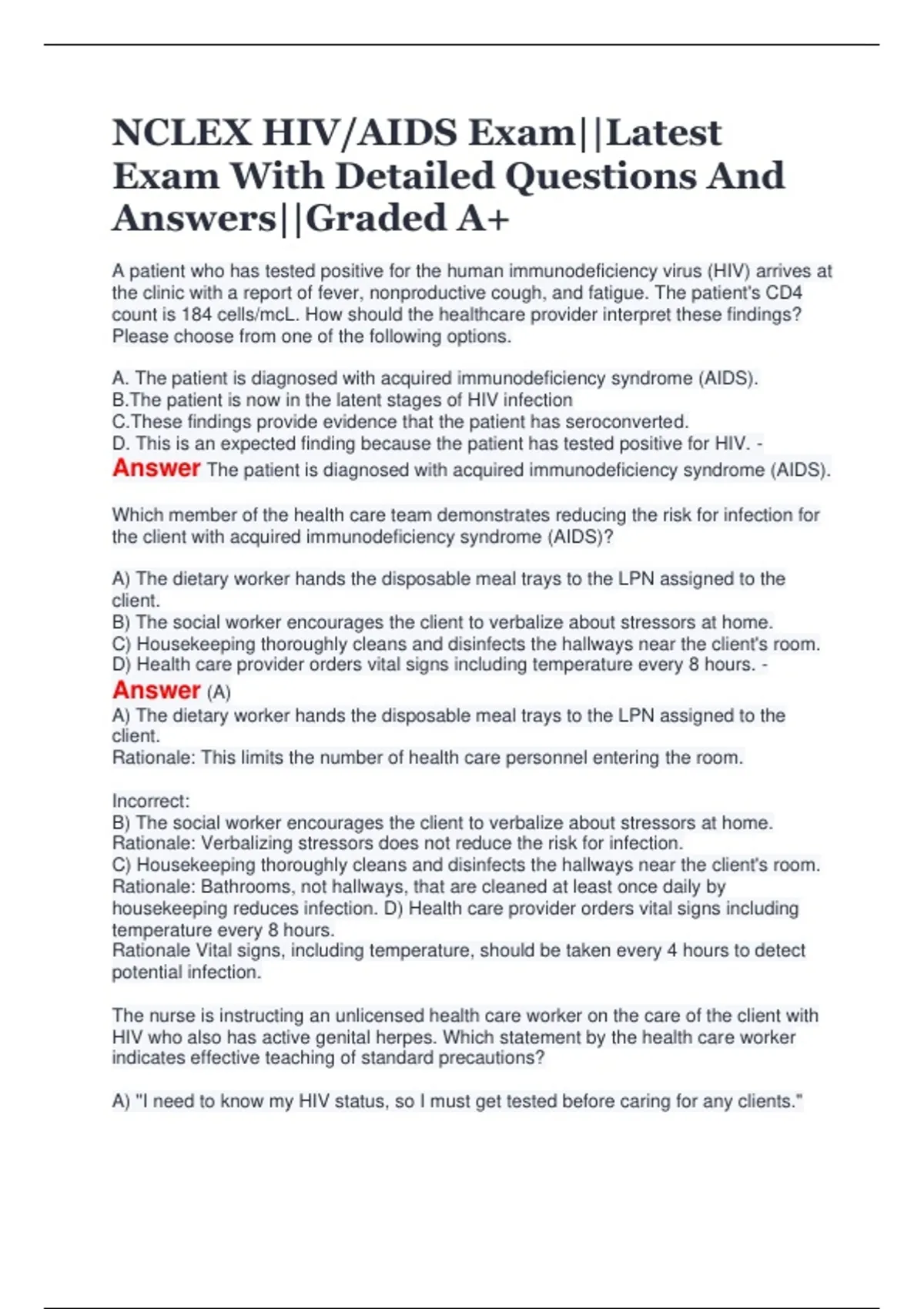 NCLEX HIV/AIDS Exam||Latest Exam With Detailed Questions And Answers||Graded A+
