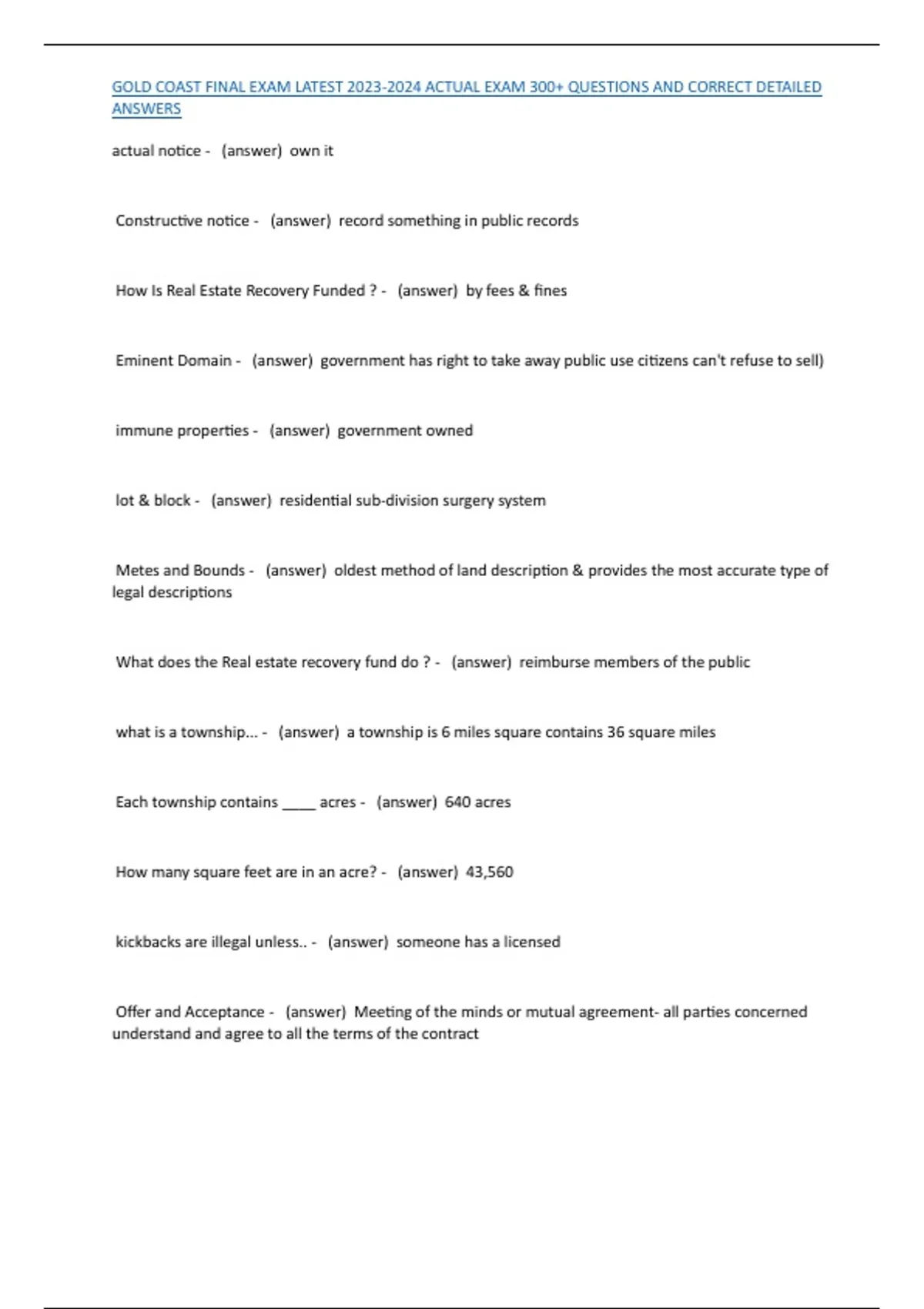 GOLD COAST FINAL EXAM LATEST 2023-2024 ACTUAL EXAM 300+ QUESTIONS AND CORRECT DETAILED