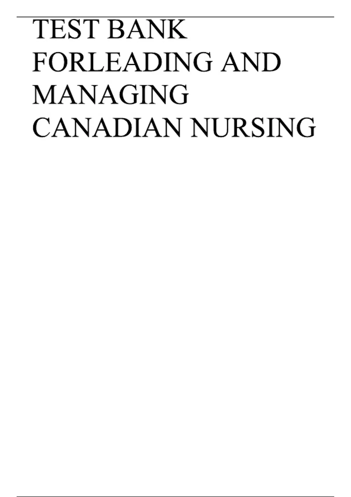 LEADING AND MANAGING IN CANADIAN NURSING TEST BANK /EXAM PREP, PRACTICE QUESTIONS & STUDY GUIDE
