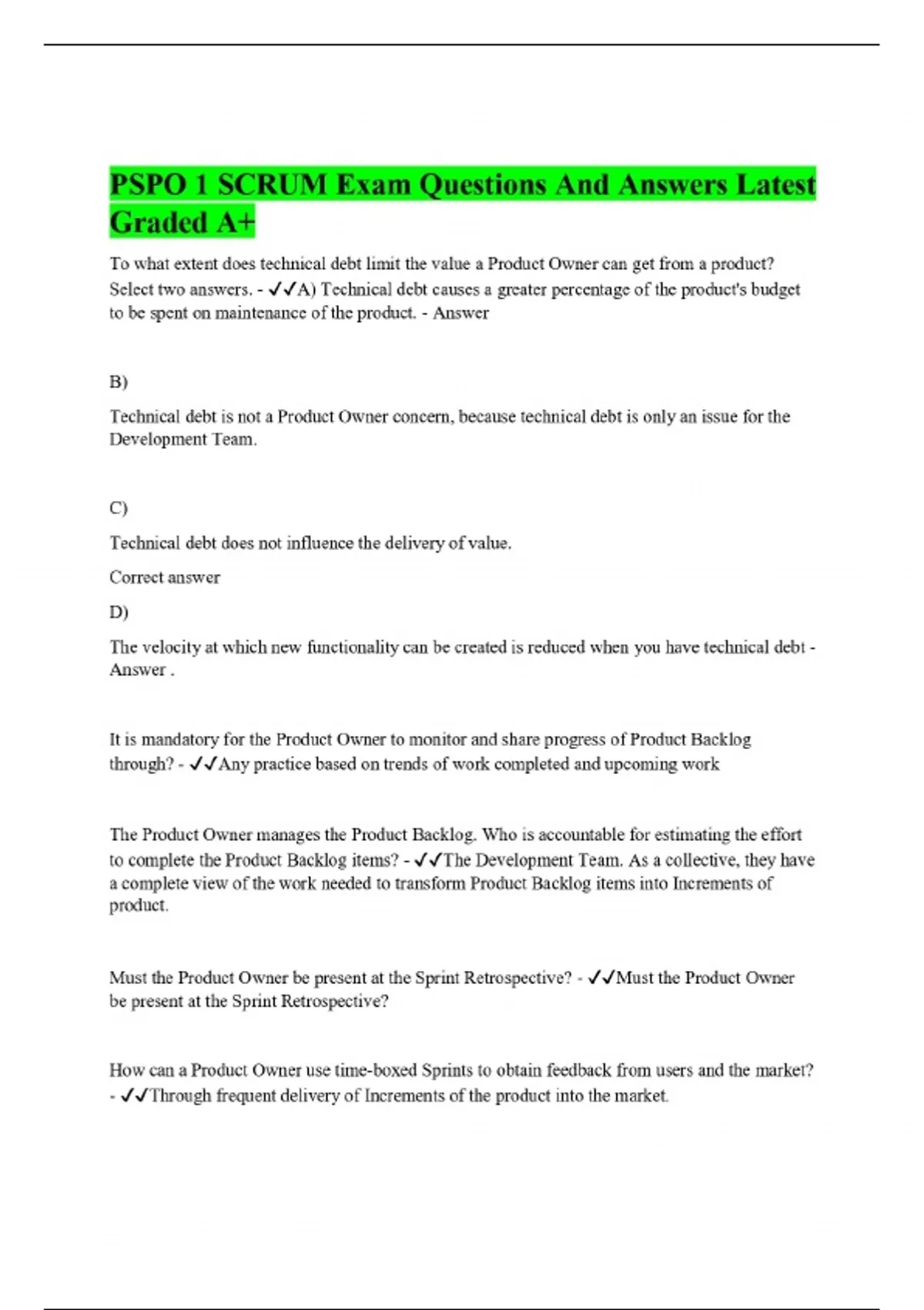 PSPO I Bundled Exam with 100% correct answers