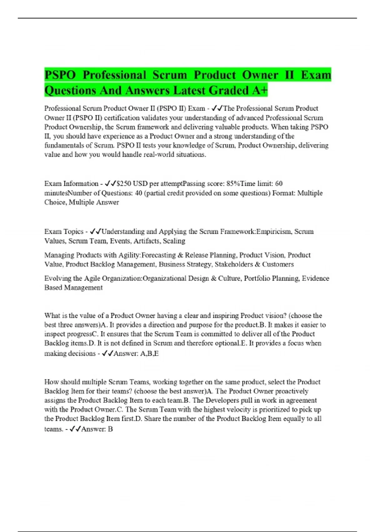 PSPO Professional Scrum Product Owner II Exam Questions And Answers Latest Graded A+