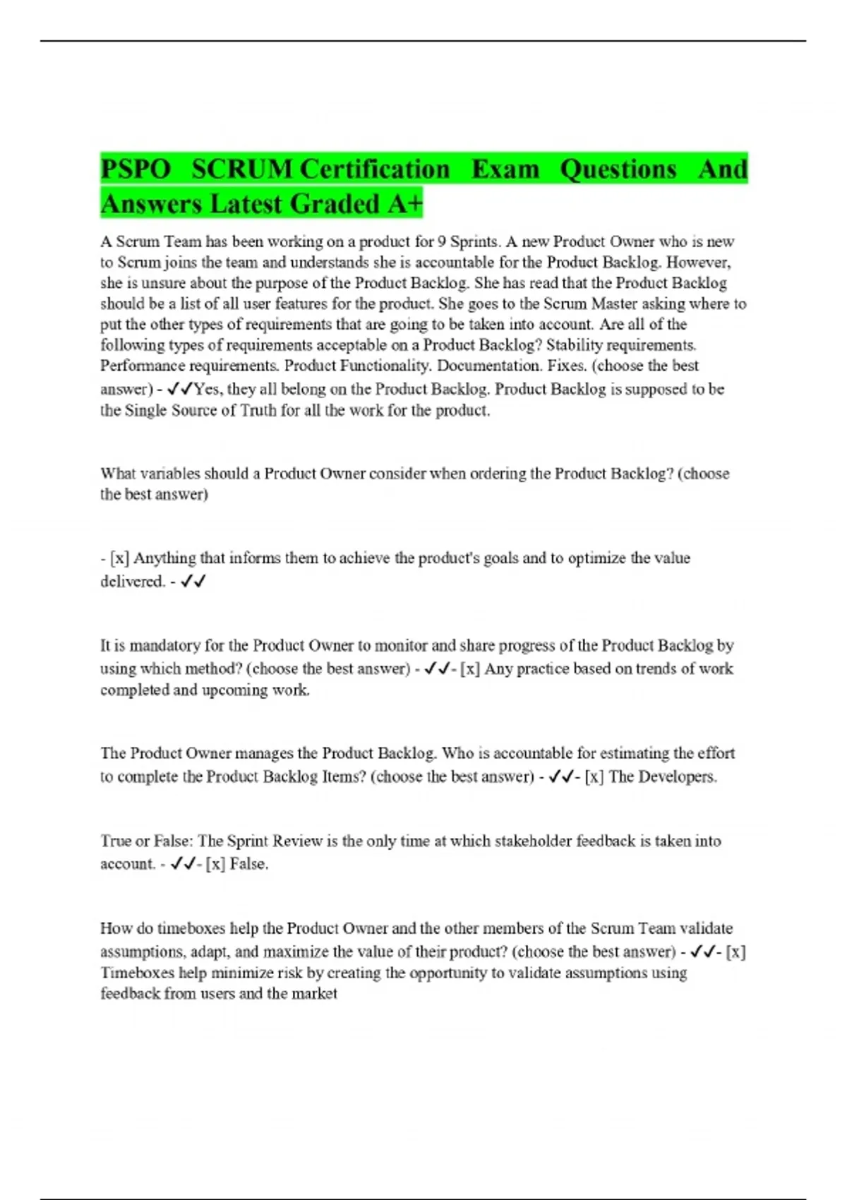 PSPO SCRUM Certification Exam Questions And Answers Latest Graded A+