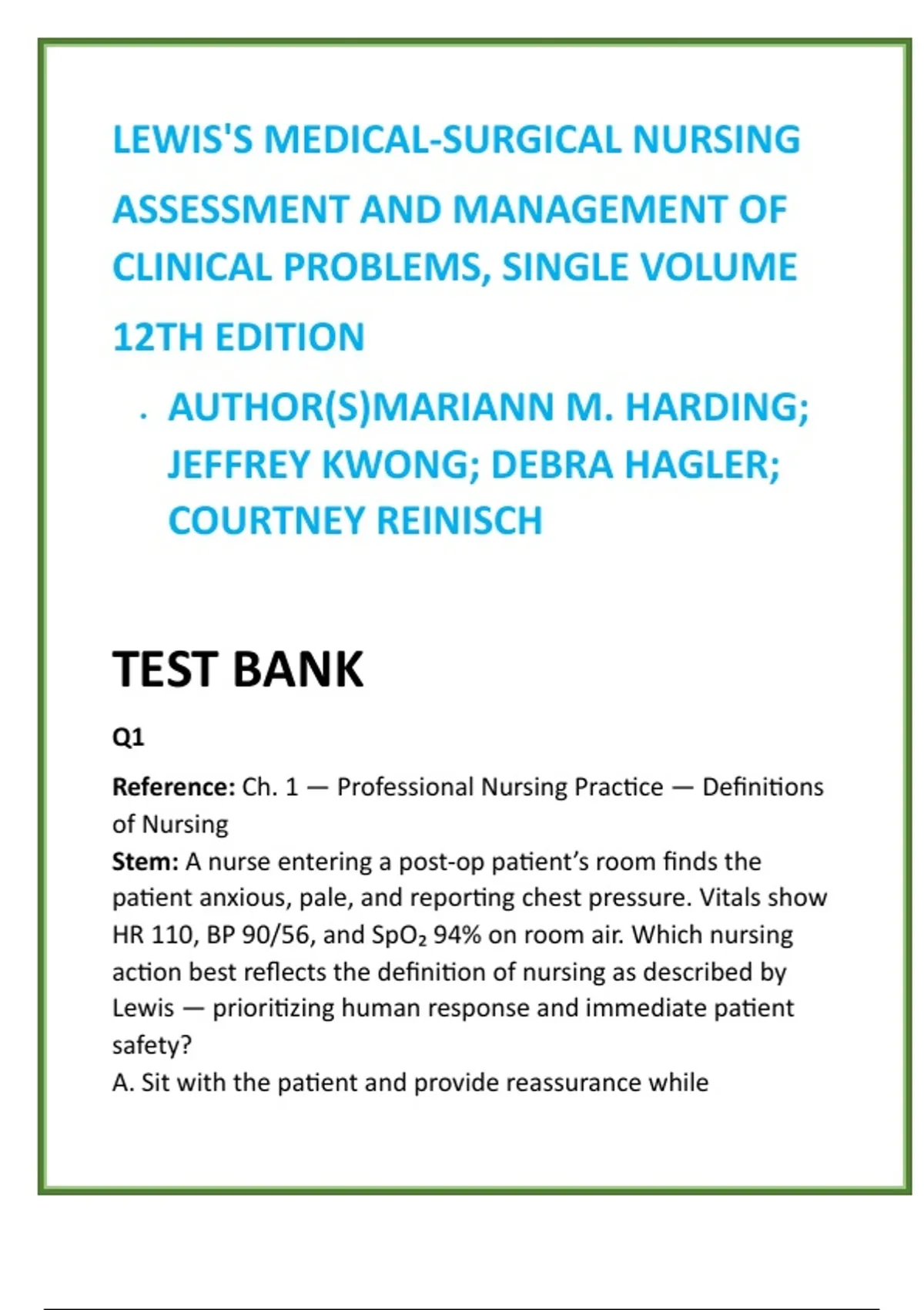 (2023). Lewis’s Medical-Surgical Nursing (12th Ed.). Ch. 1.