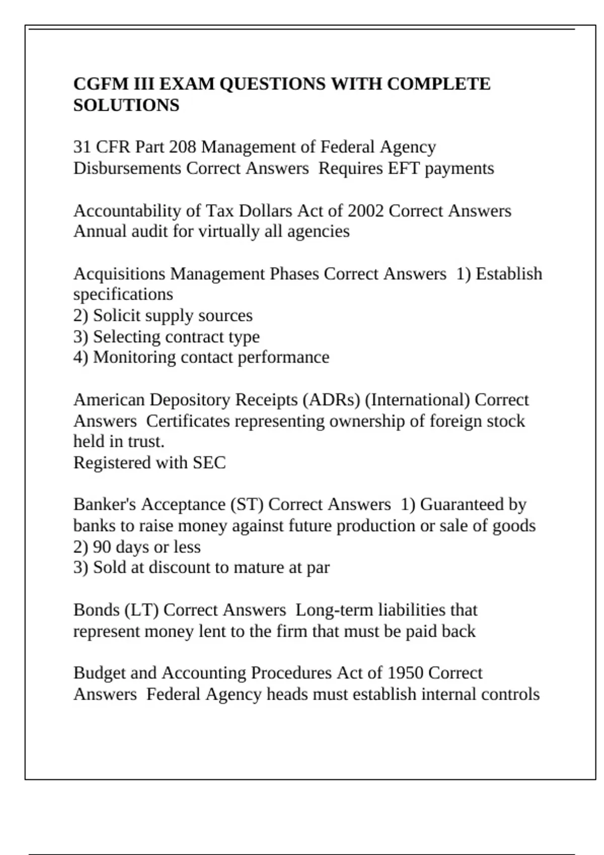 Banker's Acceptance (ST) Correct Answers 1) Guaranteed by