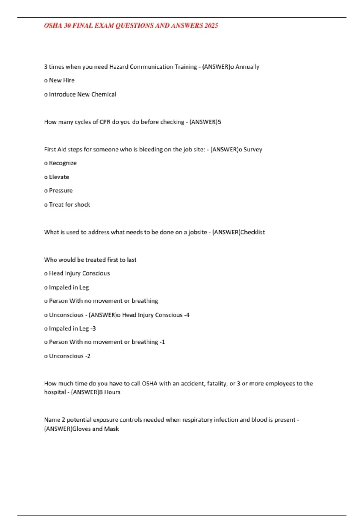 , OSHA 30 FINAL EXAM QUESTIONS AND ANSWERS 2025