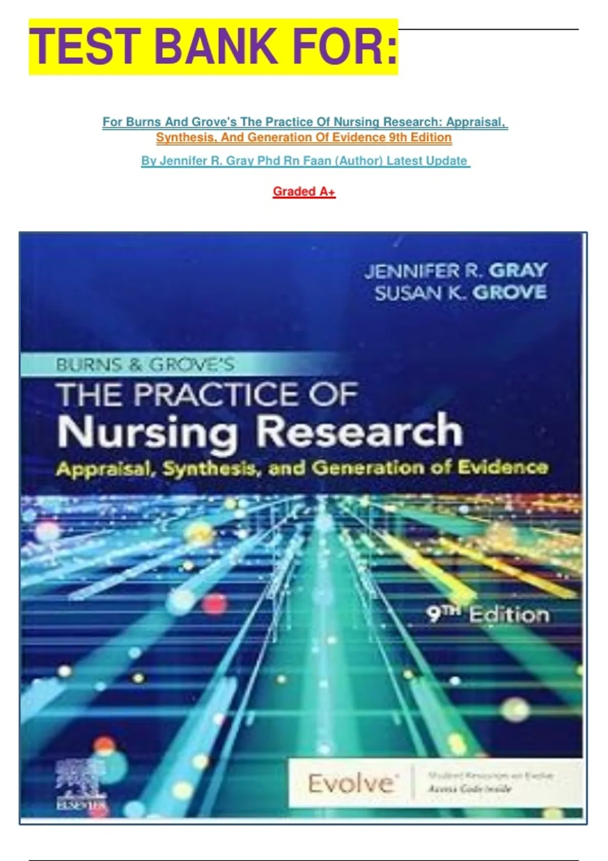 TEST BANK FOR: For Burns And Grove's The Practice Of Nursing Research: Appraisal, Synthesis, And Generation Of Evidence 9th Edition By Jennifer R. Gray Phd Rn Faan (Author) Latest Update Graded A+