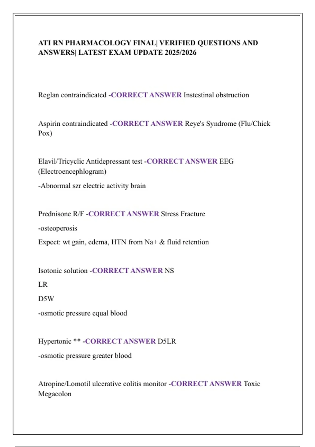 ATI RN PHARMACOLOGY FINAL| VERIFIED QUESTIONS AND ANSWERS| LATEST EXAM UPDATE 2025/2026