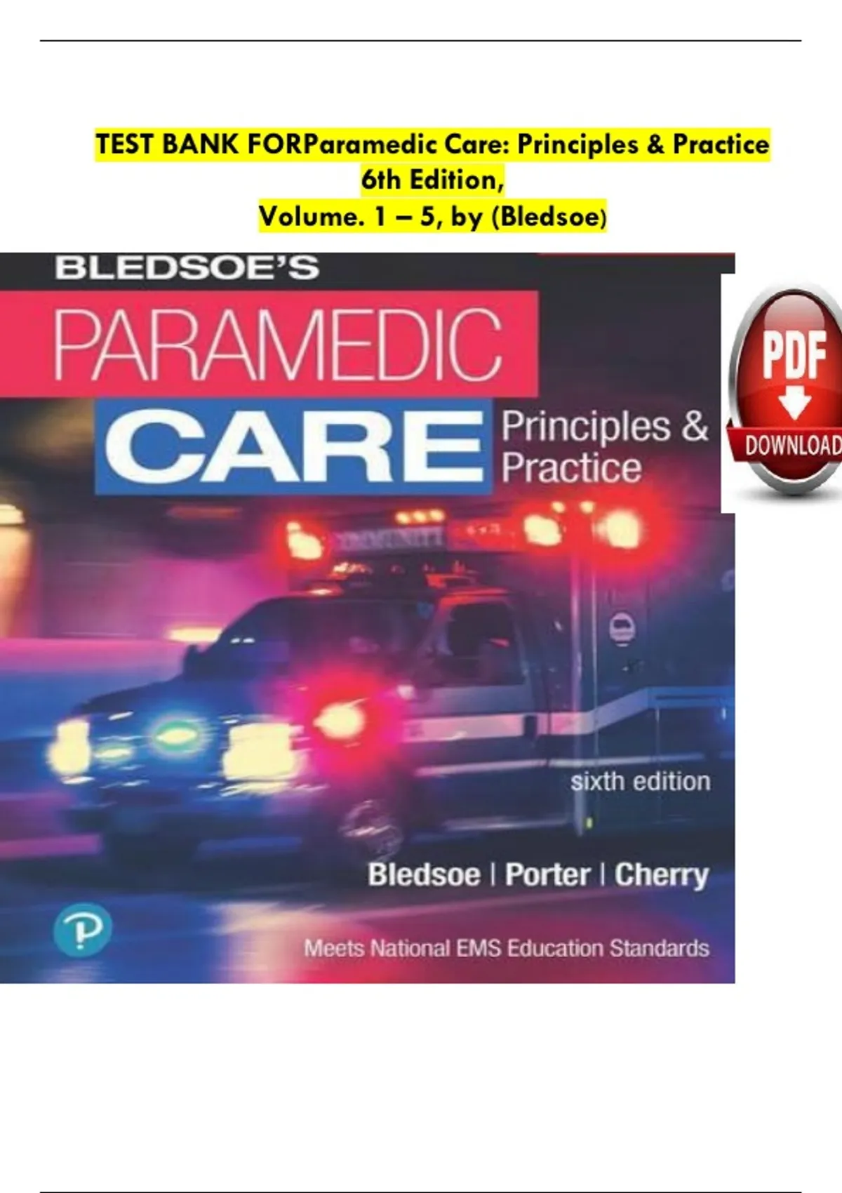 TEST BANK FORParamedic Care Principles Practice 6th Edition Volume. 1 – 5, by (Bledsoe)