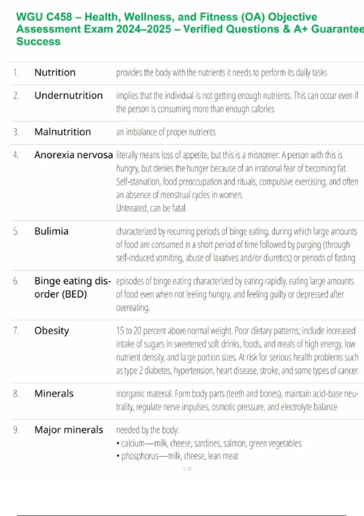 WGU C458 – Health, Wellness, and Fitness (OA) Objective Assessment Exam 2024–2025 – Verified Questions & A+ Guaranteed Success