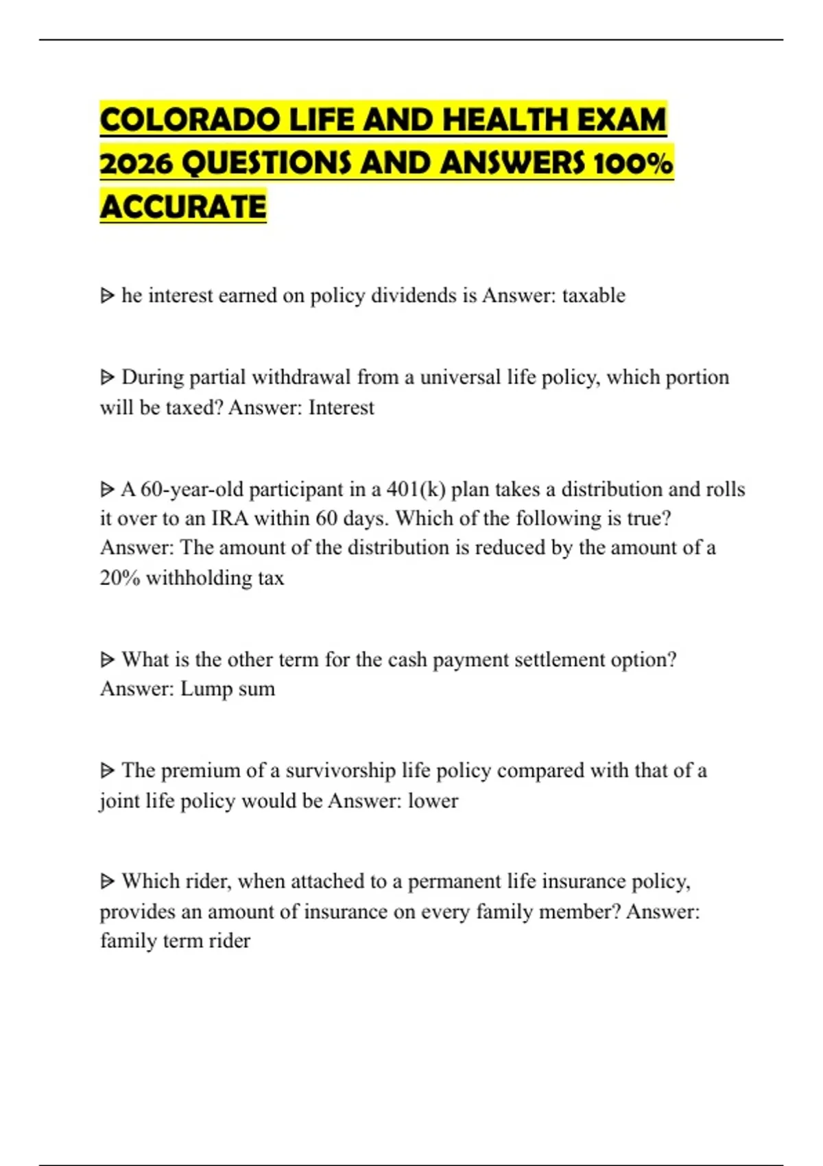 COLORADO LIFE AND HEALTH EXAM 2026 QUESTIONS AND ANSWERS 100% ACCURATE