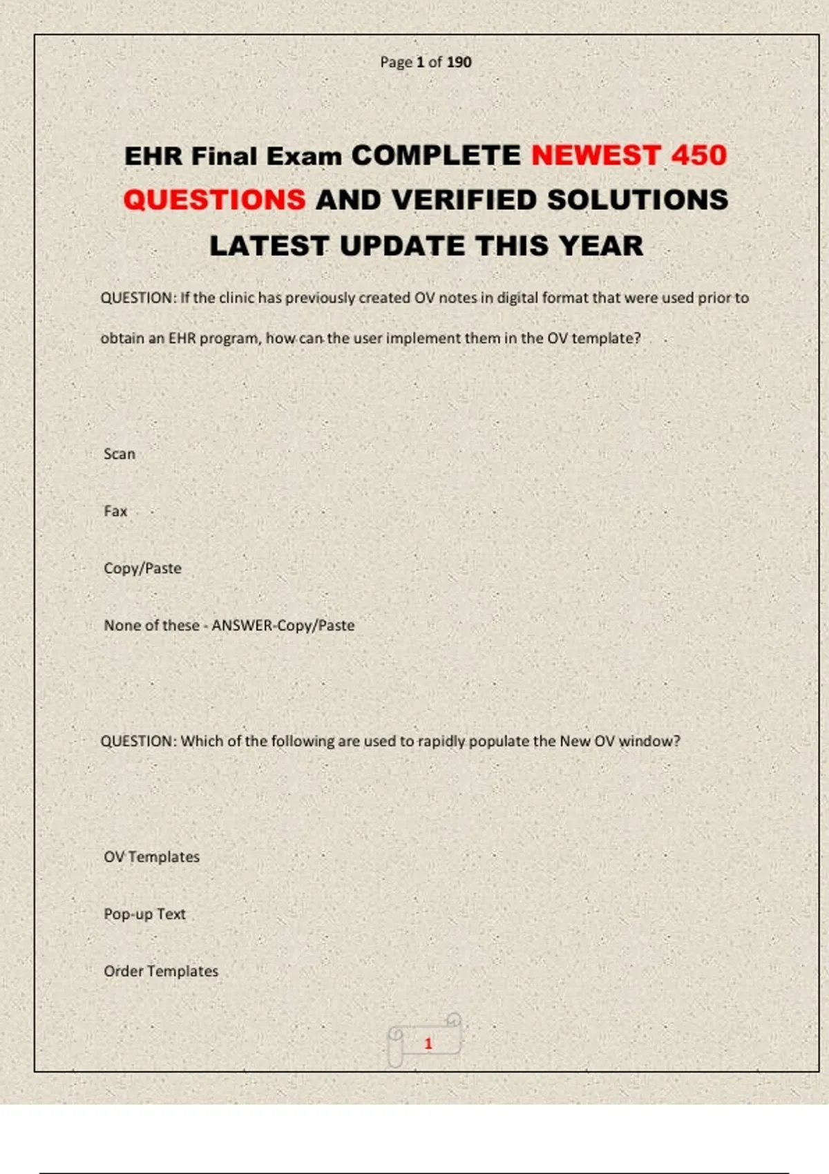 EHR Final Exam COMPLETE NEWEST 450
