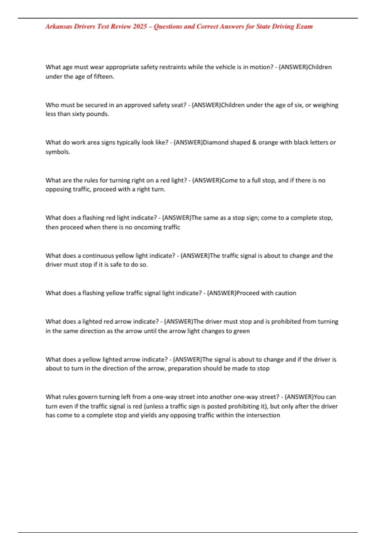 , Arkansas Drivers Test Review 2025 – Questions and Correct Answers for State Driving Exam