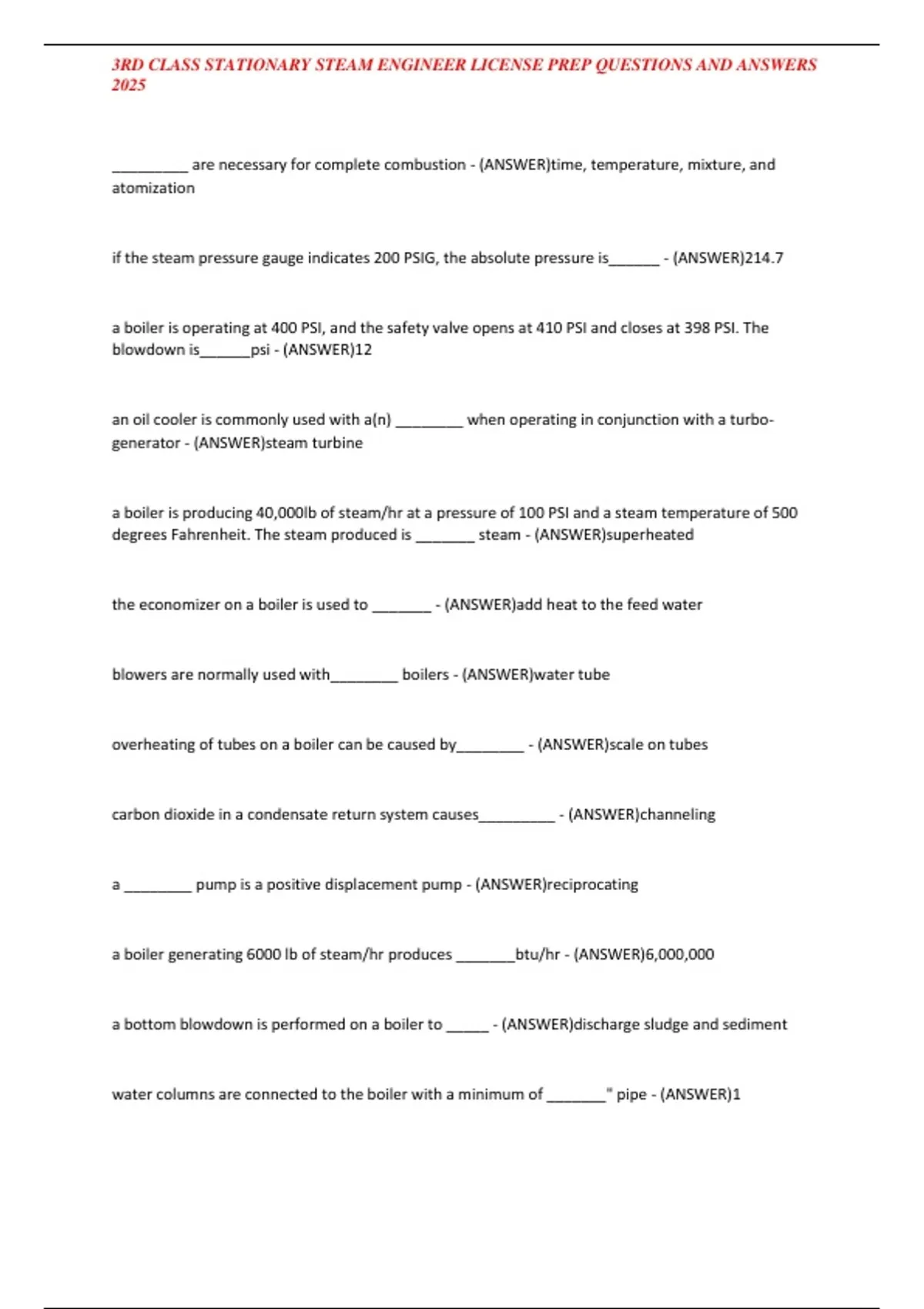 , 3RD CLASS STATIONARY STEAM ENGINEER LICENSE PREP QUESTIONS AND ANSWERS
