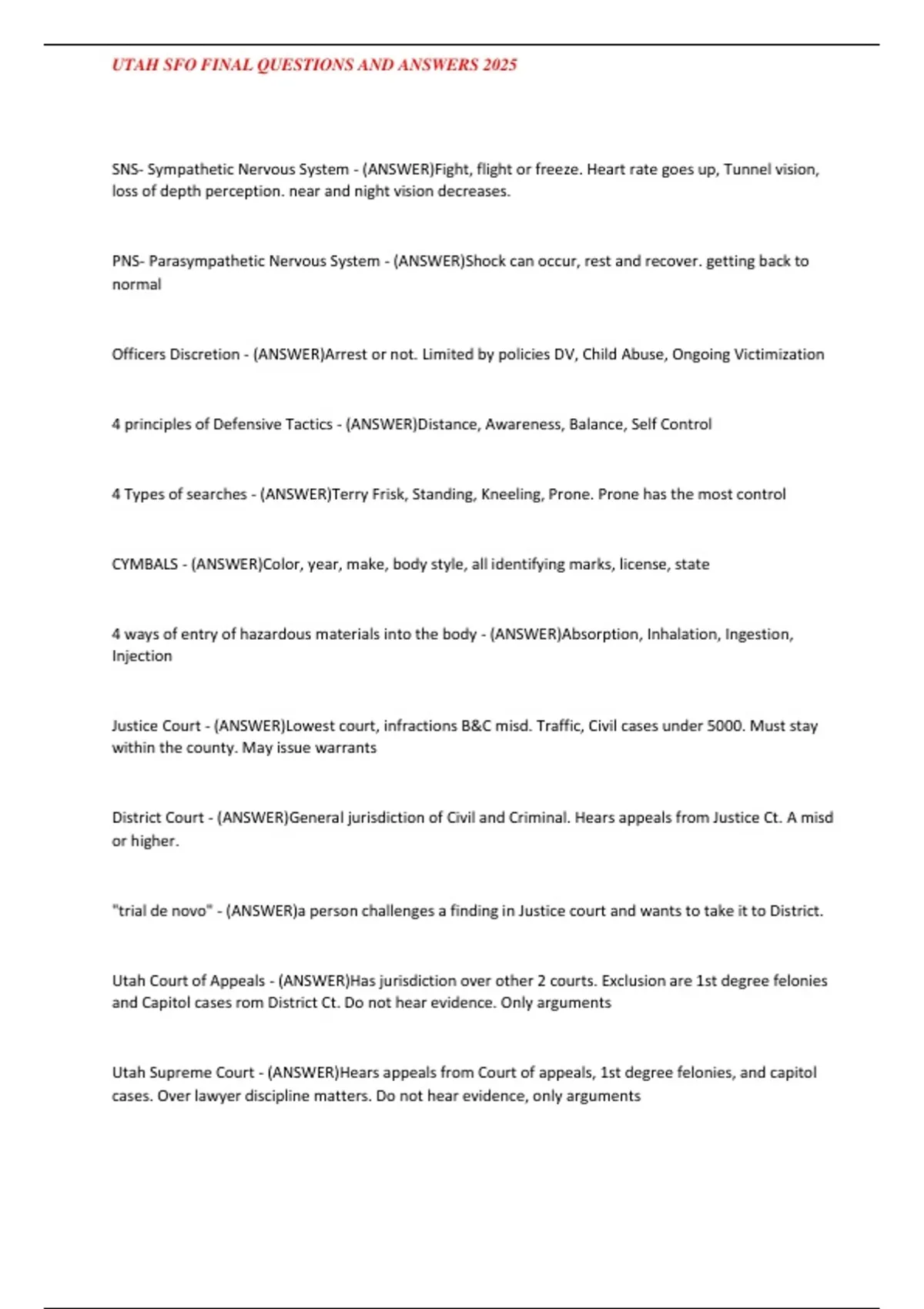 , UTAH SFO FINAL QUESTIONS AND ANSWERS 2025