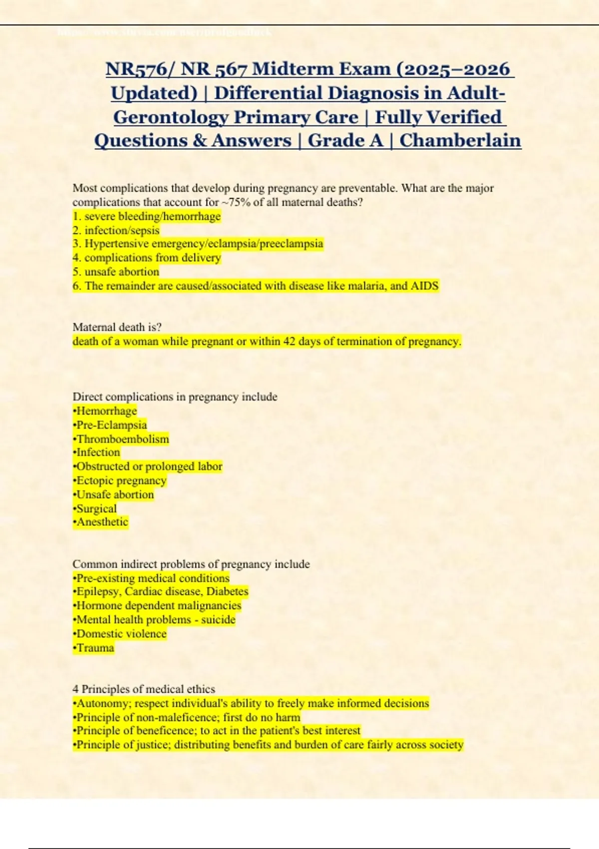 High Quality Exams, Study guides, Reviews, Notes, Case Studies