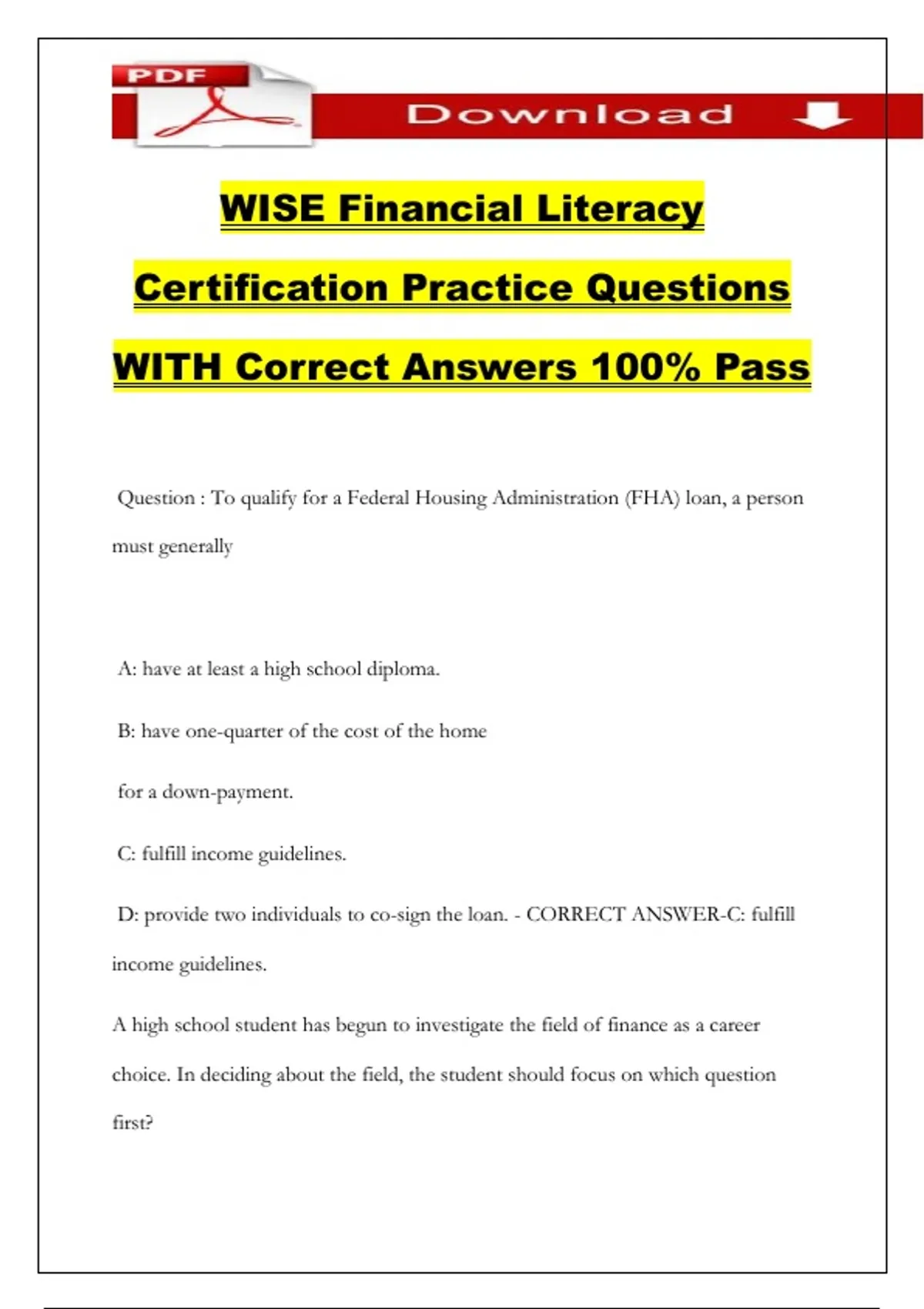 D: provide two individuals to co-sign the loan. - CORRECT ANSWER-C: fulfill