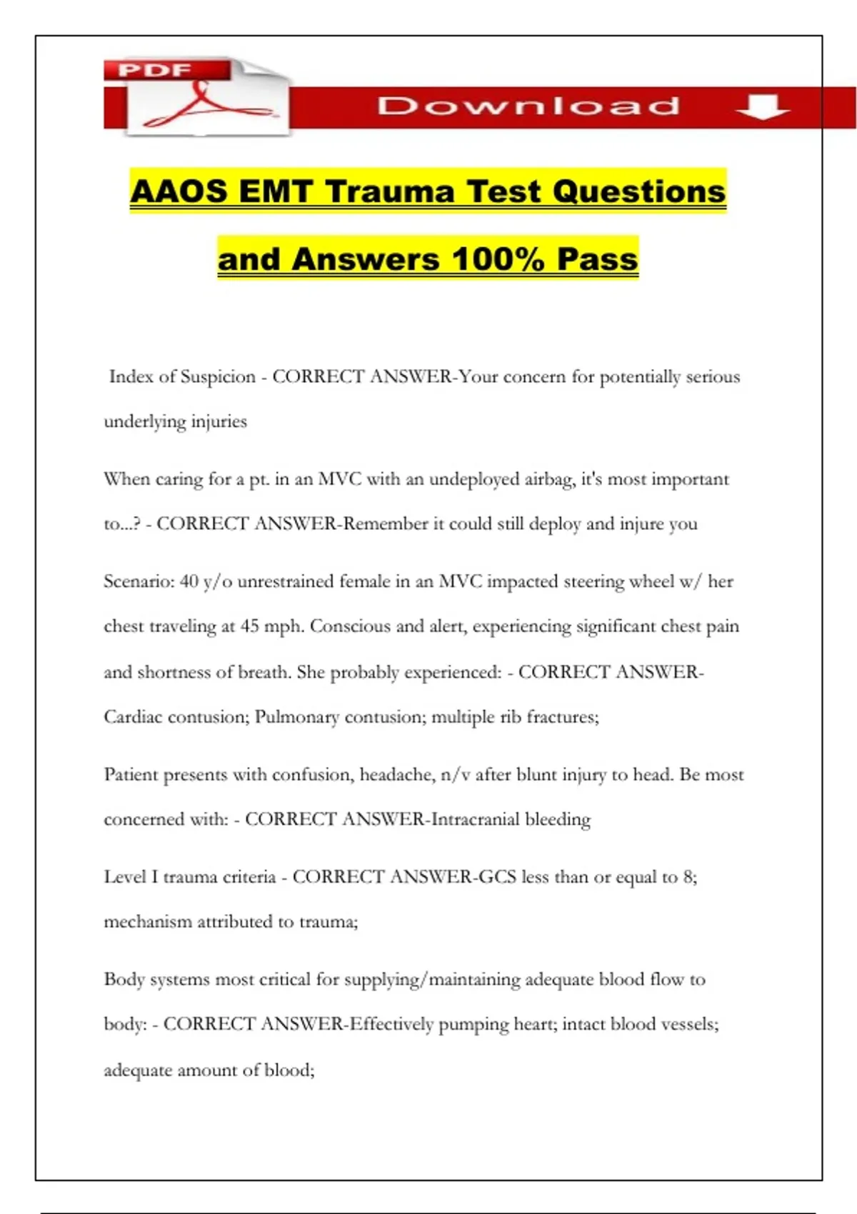 AAOS EMT Trauma Test Questions and Answers 100% Pass