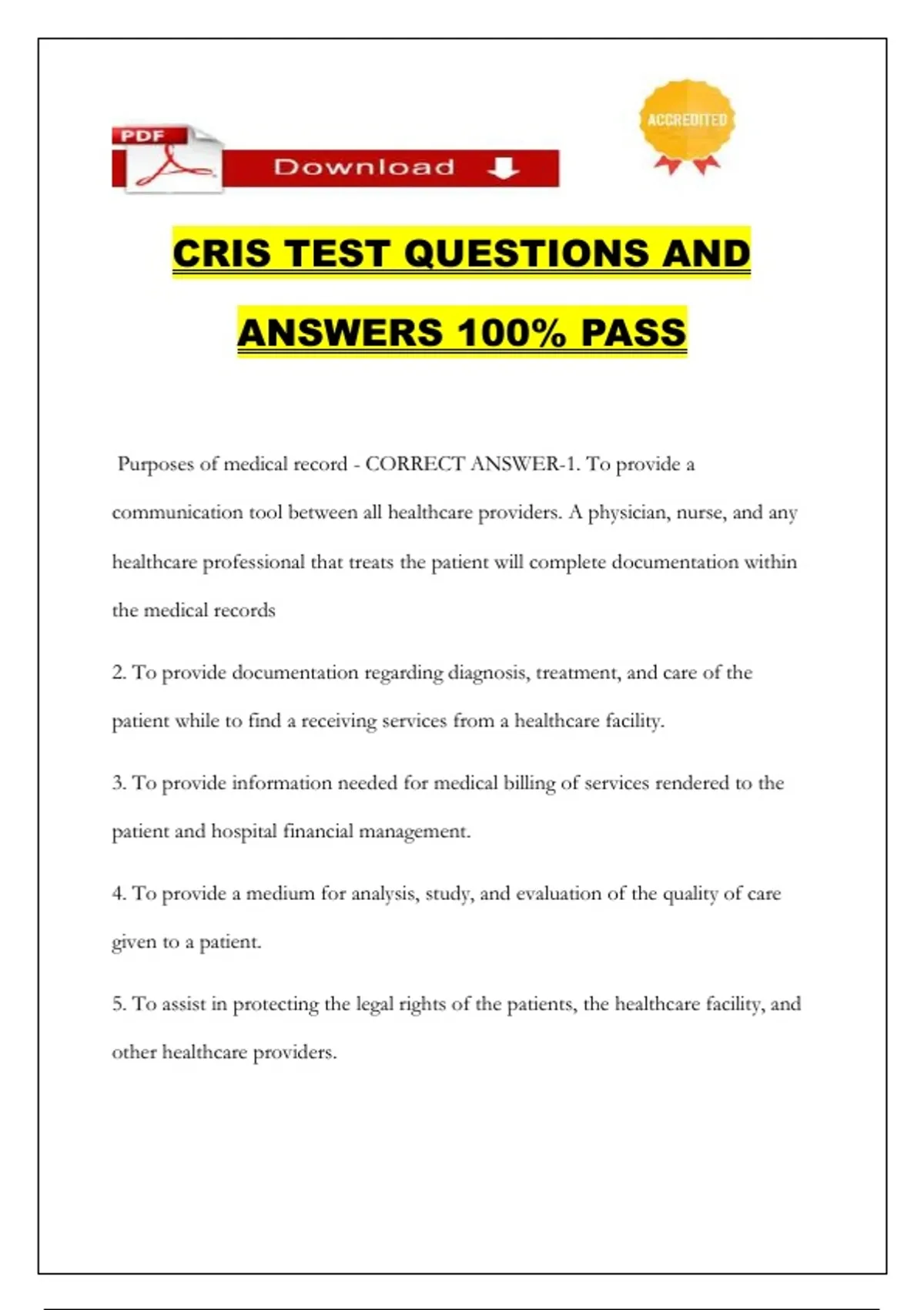 CRIS TEST QUESTIONS AND ANSWERS 100% PASS