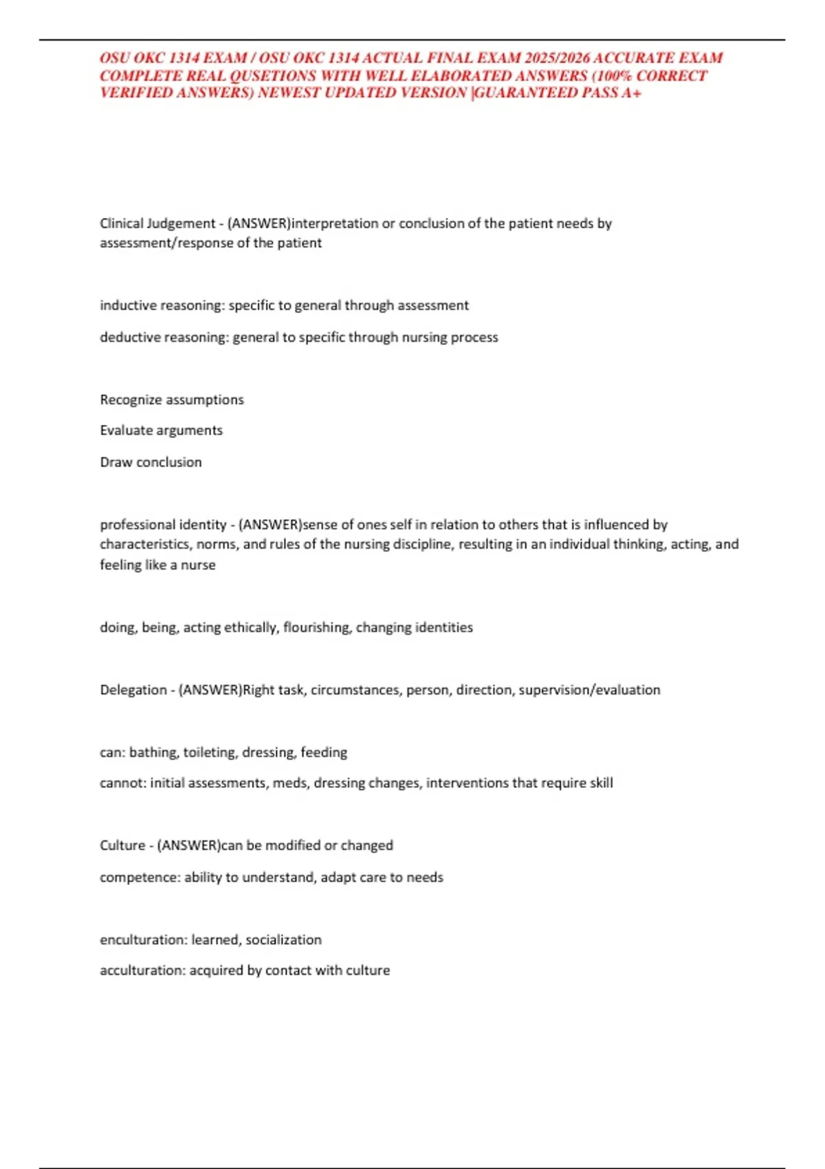 OSU OKC 1314 EXAM / OSU OKC 1314 ACTUAL FINAL EXAM 2025/2026 ACCURATE EXAM COMPLETE REAL QUSETIONS WITH WELL ELABORATED ANSWERS (100% CORRECT VERIFIED ANSWERS) NEWEST UPDATED VERSION |GUARANTEED PASS A+