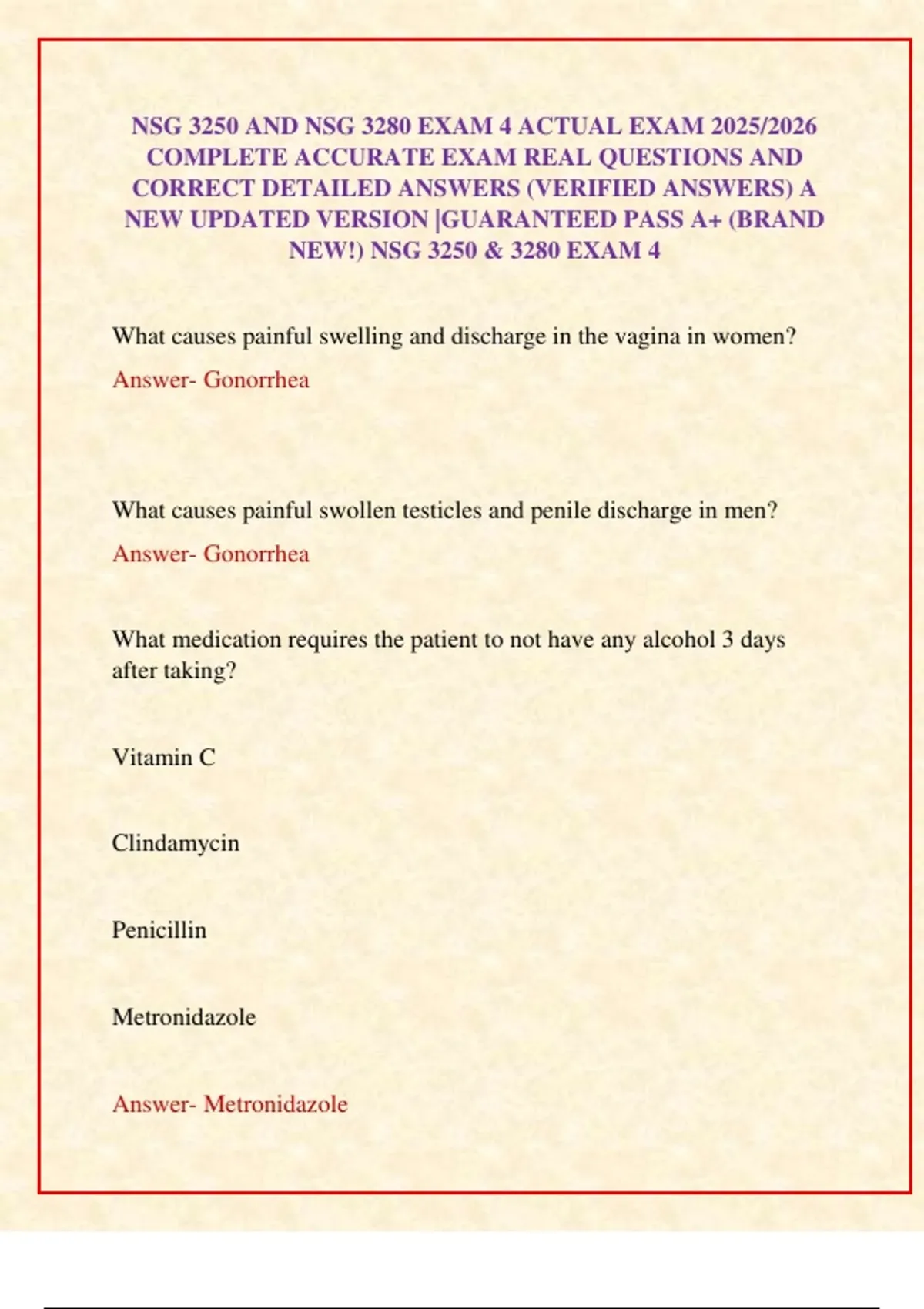 NEW!) NSG 3250 & 3280 EXAM 4