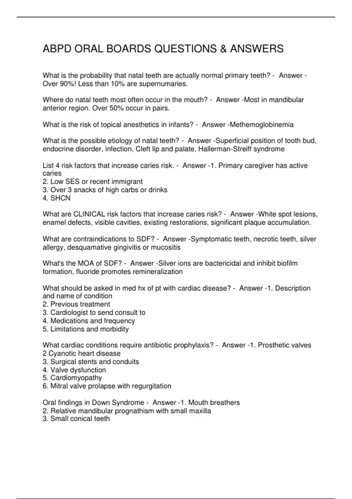 ABPD ORAL BOARDS QUESTIONS & ANSWERS