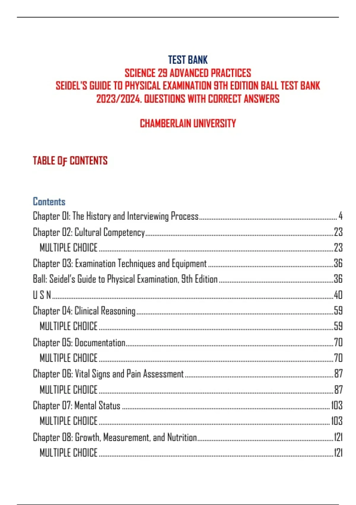 SEIDEL'S GUIDE TO PHYSICAL EXAMINATION 9TH EDITION BALL TEST BANK