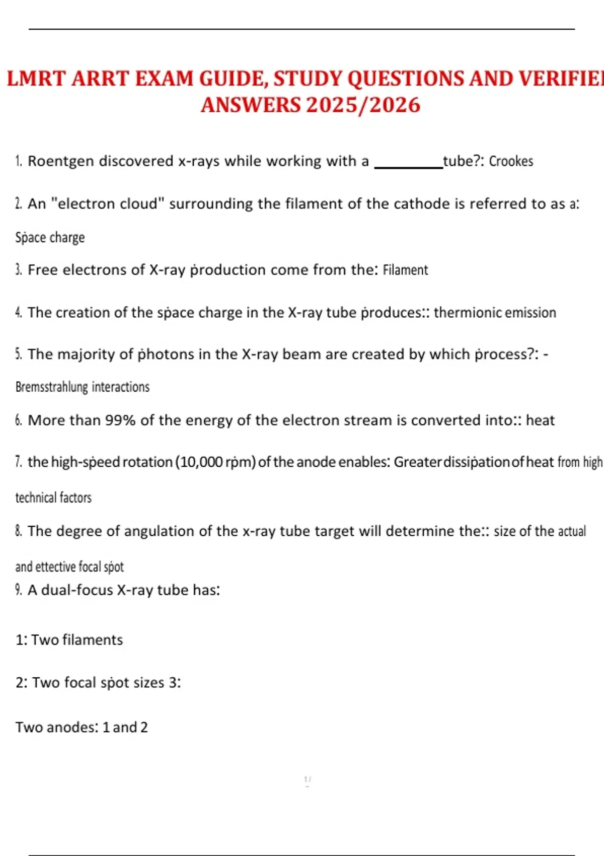 LMRT ARRT EXAM GUIDE, STUDY QUESTIONS AND VERIFIED