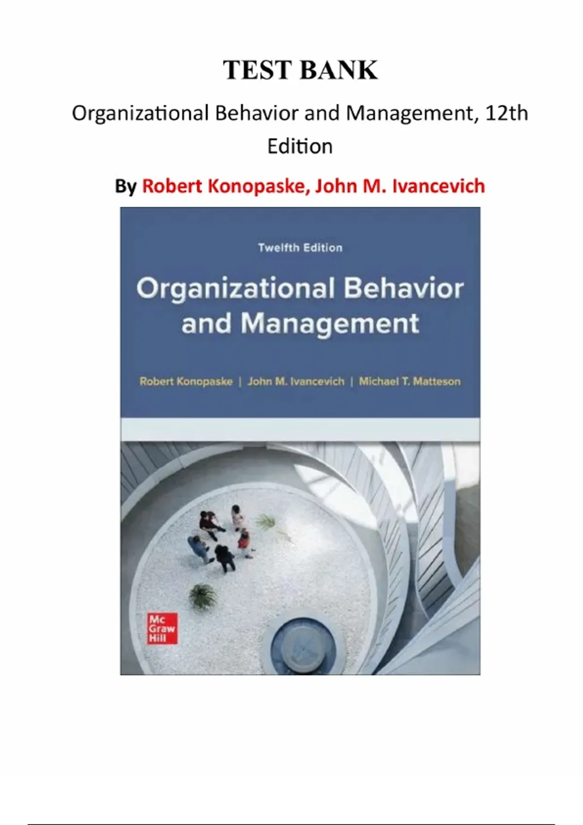Test Bank - Organizational Behavior and Management 12th Edition (Konopaske, 2022), Chapter 1-17 | All Chapters