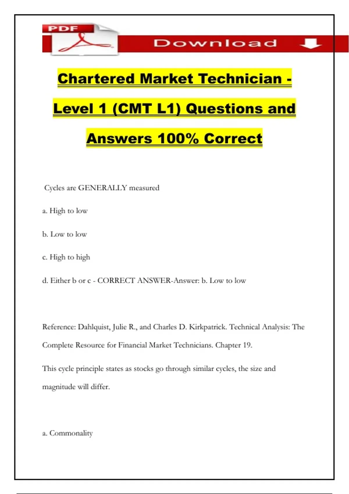 Level 1 (CMT L1) Questions and