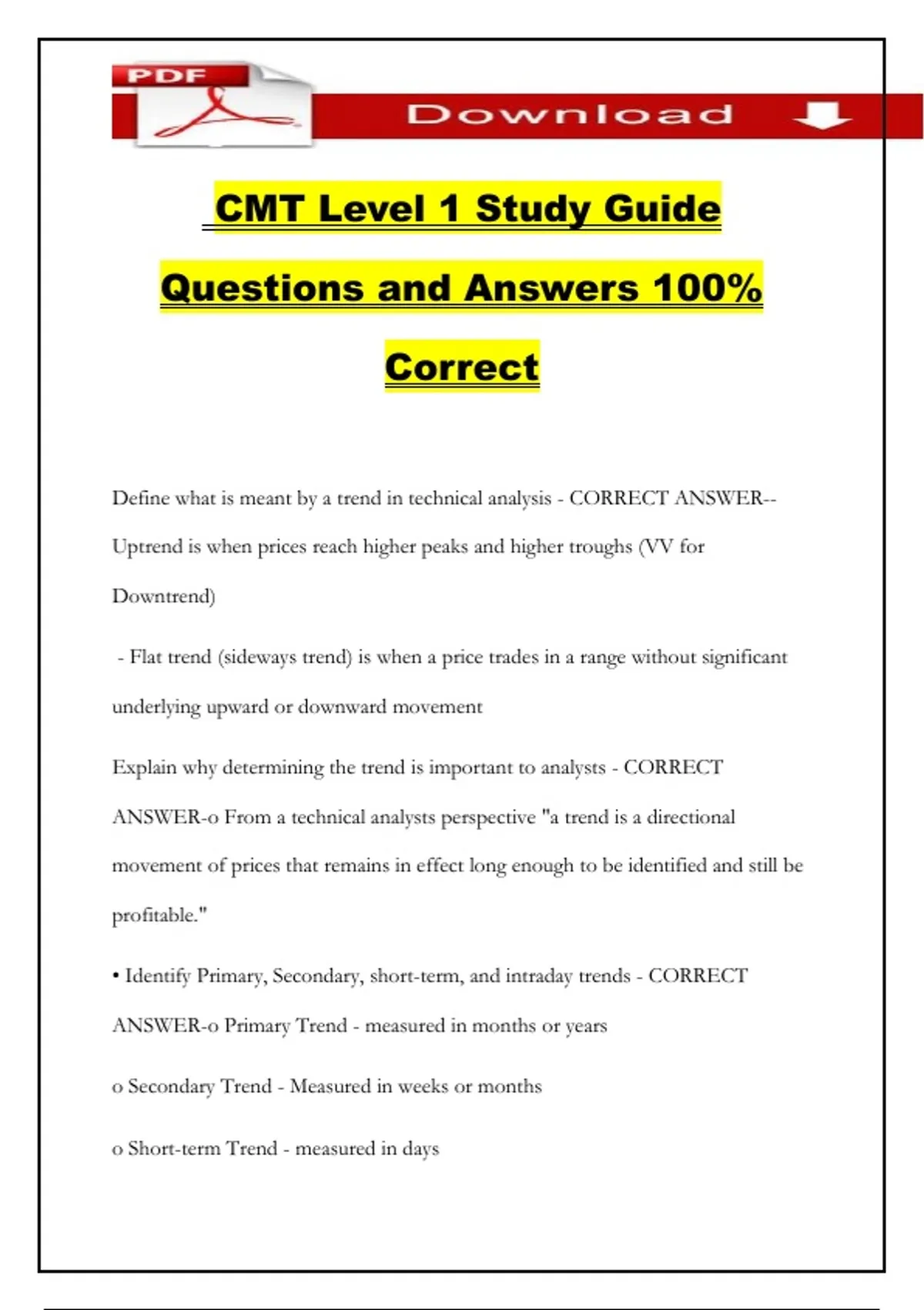CMT Level 1 Study Guide Questions and Answers 100% Correct