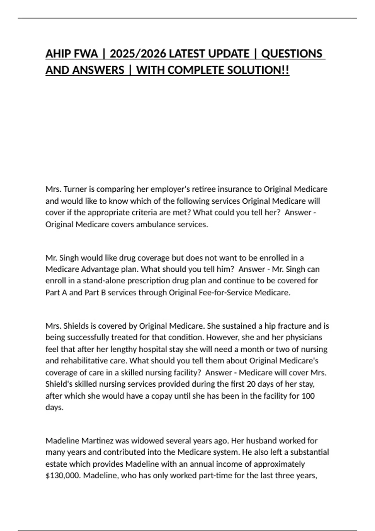 AHIP FWA | 2025/2026 LATEST UPDATE | QUESTIONS AND ANSWERS | WITH COMPLETE SOLUTION!!