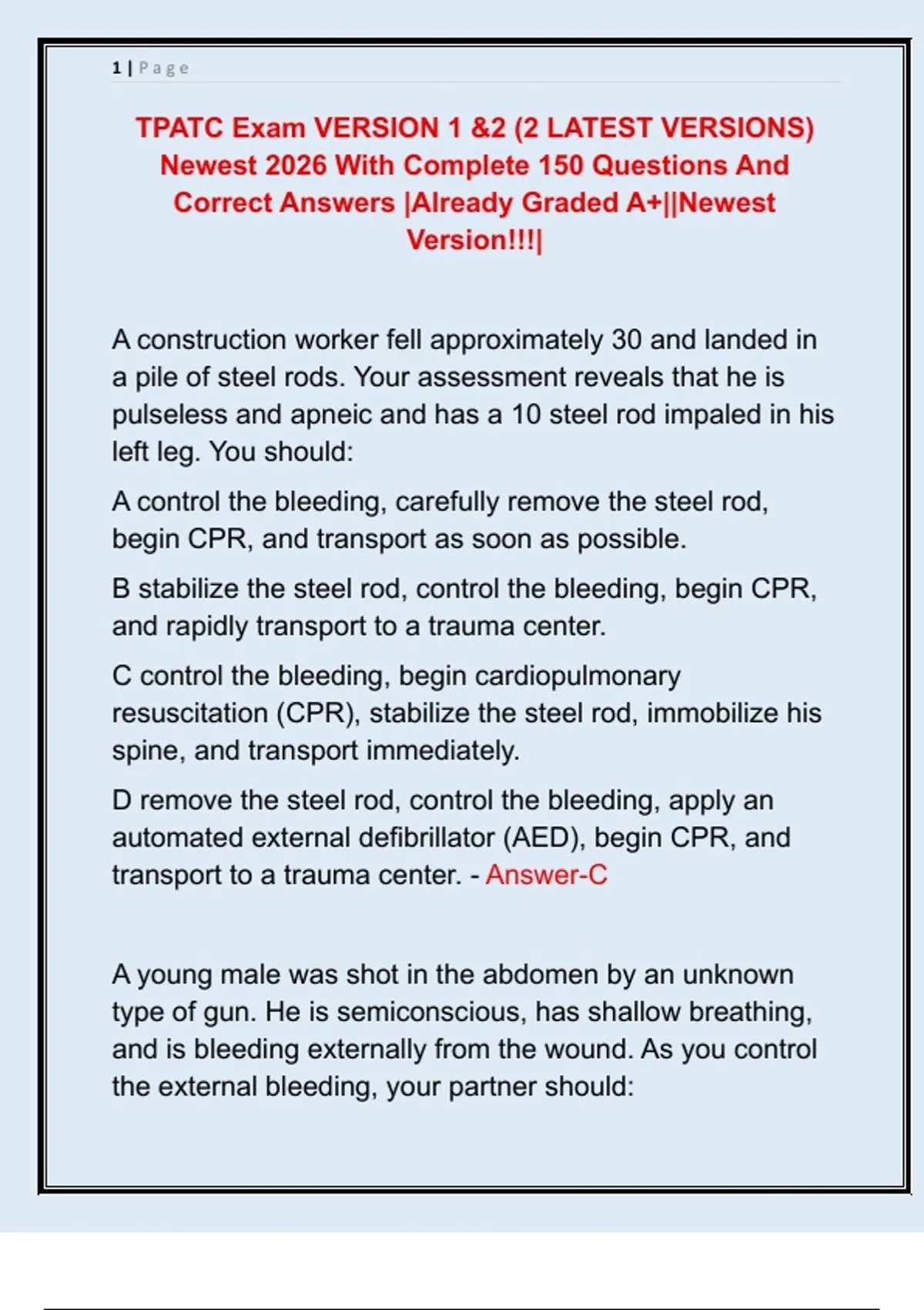 TPATC Exam VERSION 1 &2 (2 LATEST VERSIONS)