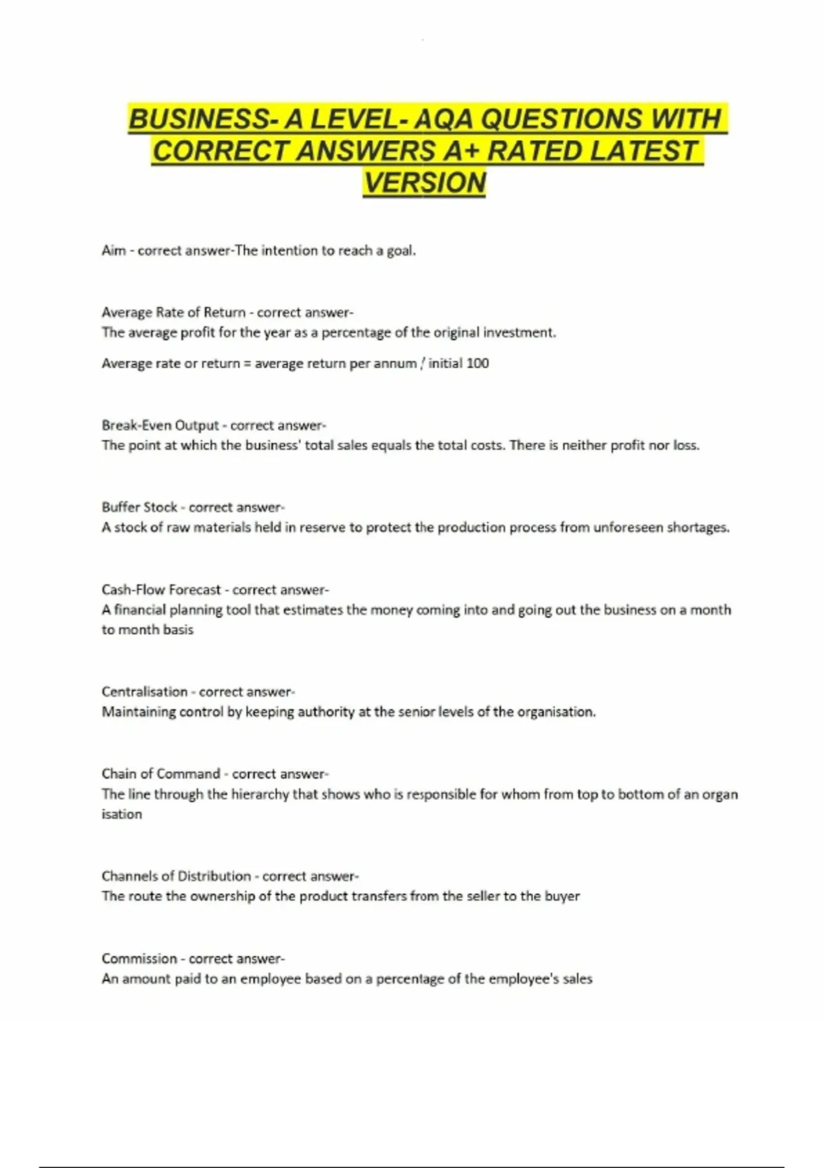 BUSINESS- A LEVEL- AQA QUESTIONS WITH CORRECT ANSWERS A+ RATED LATEST VERSION BUSINESS- A LEVEL- AQA QUESTIONS WITH CORRECT ANSWERS A+ RATED LATEST VERSION BUSINESS- A LEVEL- AQA QUESTIONS WITH CORRECT ANSWERS A+ RATED LATEST VERSION BUSINESS- A LEVEL- AQA QUESTIONS WITH CORRECT ANSWERS A+ RATED LATEST VERSION
