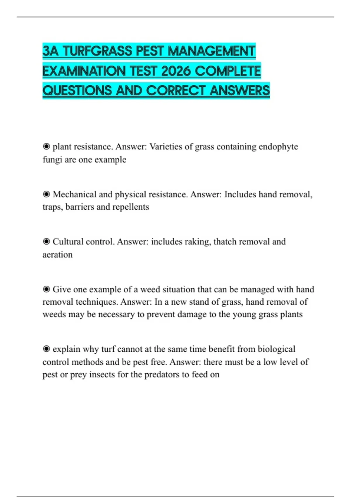 3A TURFGRASS PEST MANAGEMENT EXAMINATION TEST 2026 COMPLETE QUESTIONS AND CORRECT ANSWERS