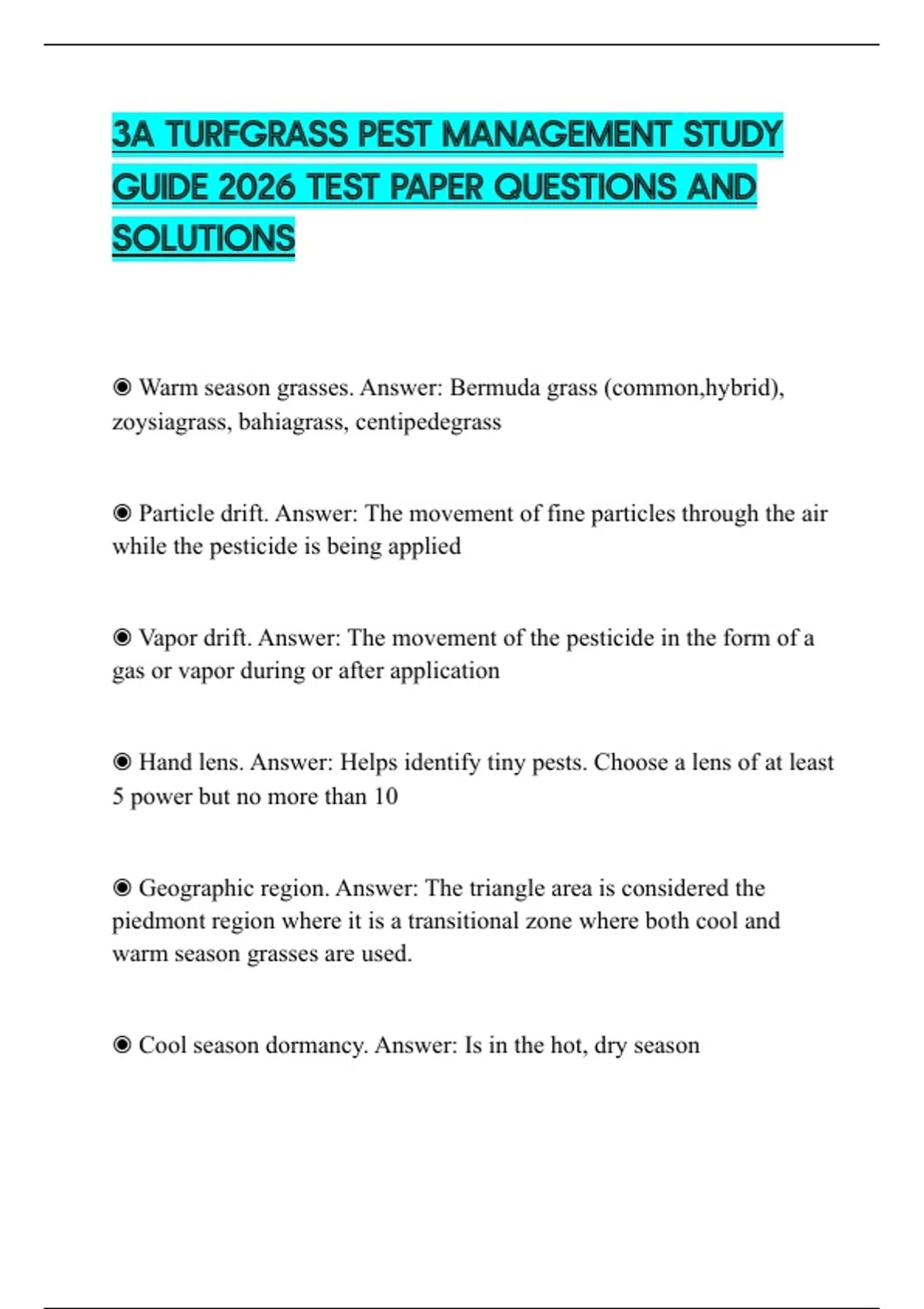 3A TURFGRASS PEST MANAGEMENT STUDY GUIDE 2026 TEST PAPER QUESTIONS AND SOLUTIONS