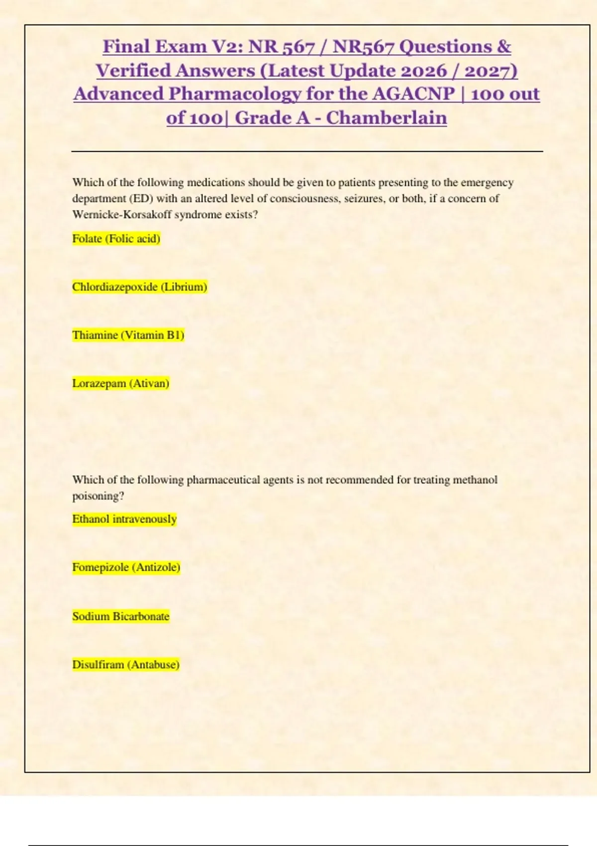 , Final Exam V2: NR 567 / NR567 Questions &