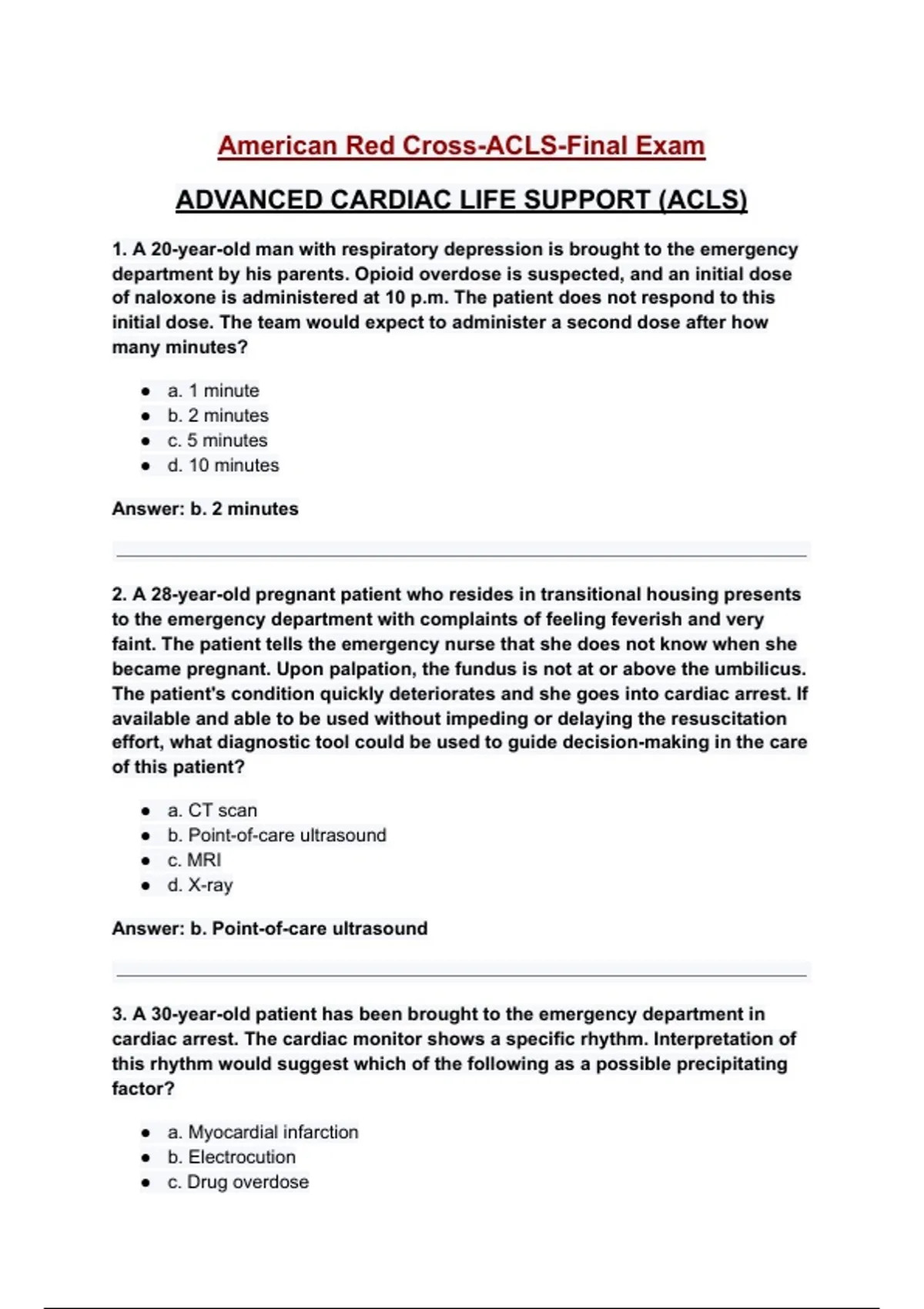 American Red Cross-ACLS-Final Exam
