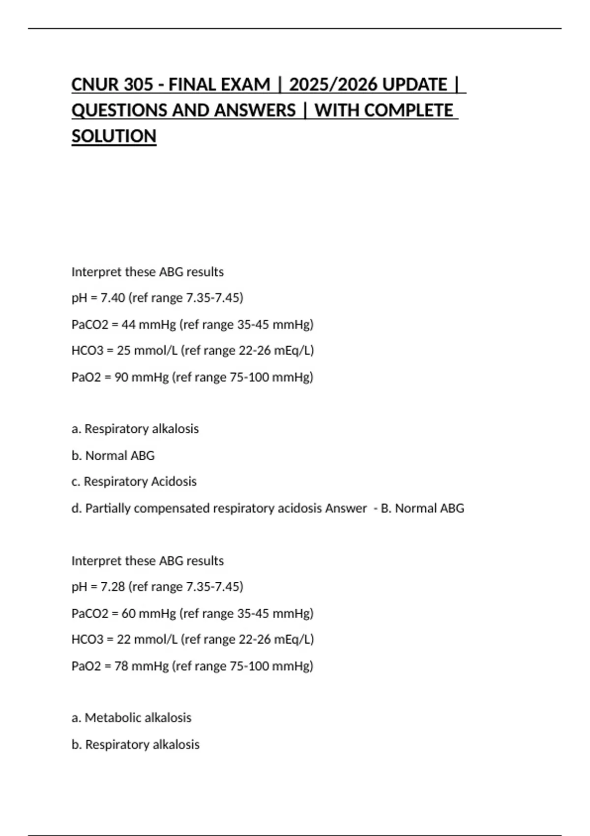 d. Partially compensated respiratory acidosis Answer - B. Normal ABG