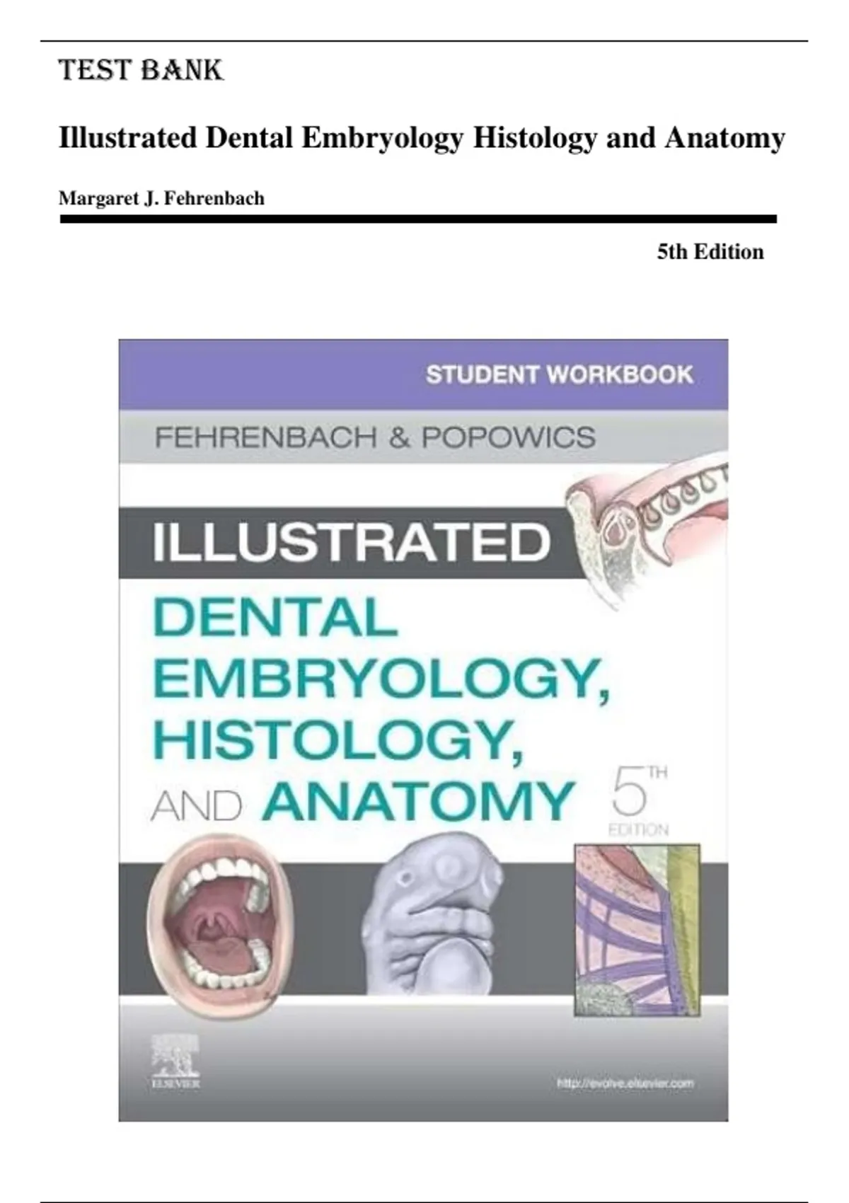 Test Bank for Illustrated Dental Embryology, Histology and Anatomy 5th Edition by Margaret J. Fehrenbach. This is not a book, but a test bank is a collection of pre-prepared exam questions and answers, designed to help teachers assess students' knowledge and understanding of course material.