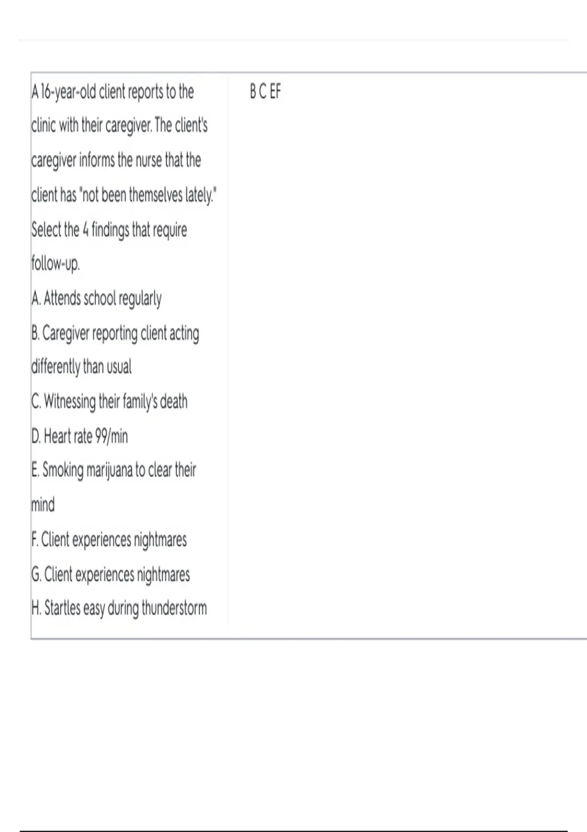 F. Client experiences nightmares