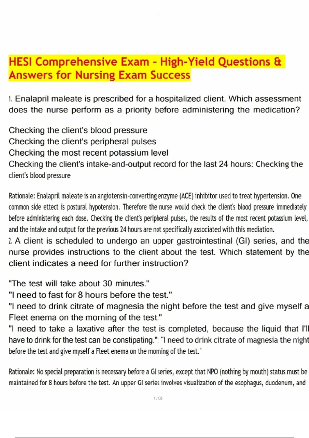 HESI Comprehensive Exam – High-Yield Questions & Answers for Nursing Exam S HESI Comprehensive Exam – High-Yield Questions & Answers for Nursing Exam S HESI Comprehensive Exam – High-Yield Questions & Answers for Nursing Exam S