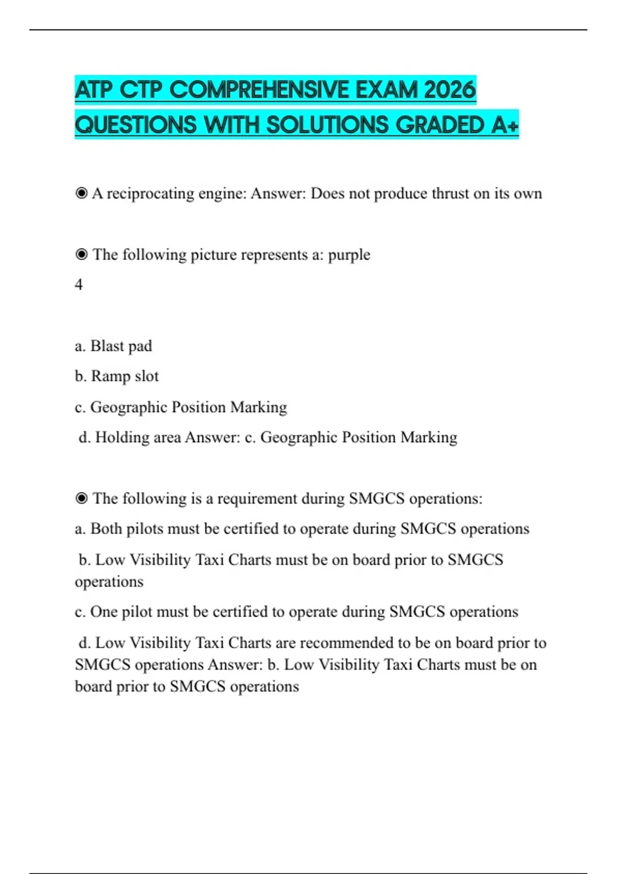SMGCS operations Answer: b. Low Visibility Taxi Charts must be on