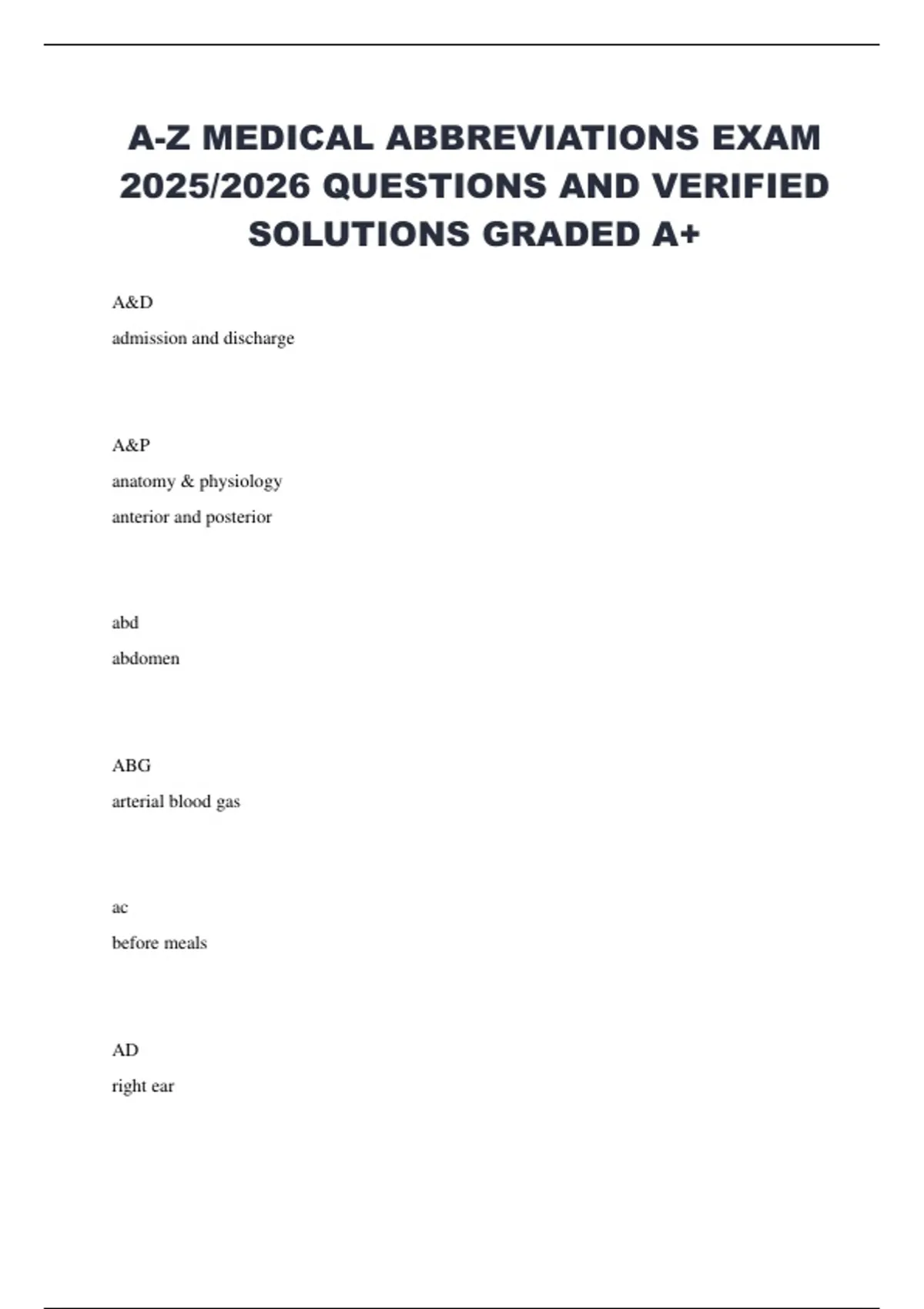 A-Z MEDICAL ABBREVIATIONS EXAM