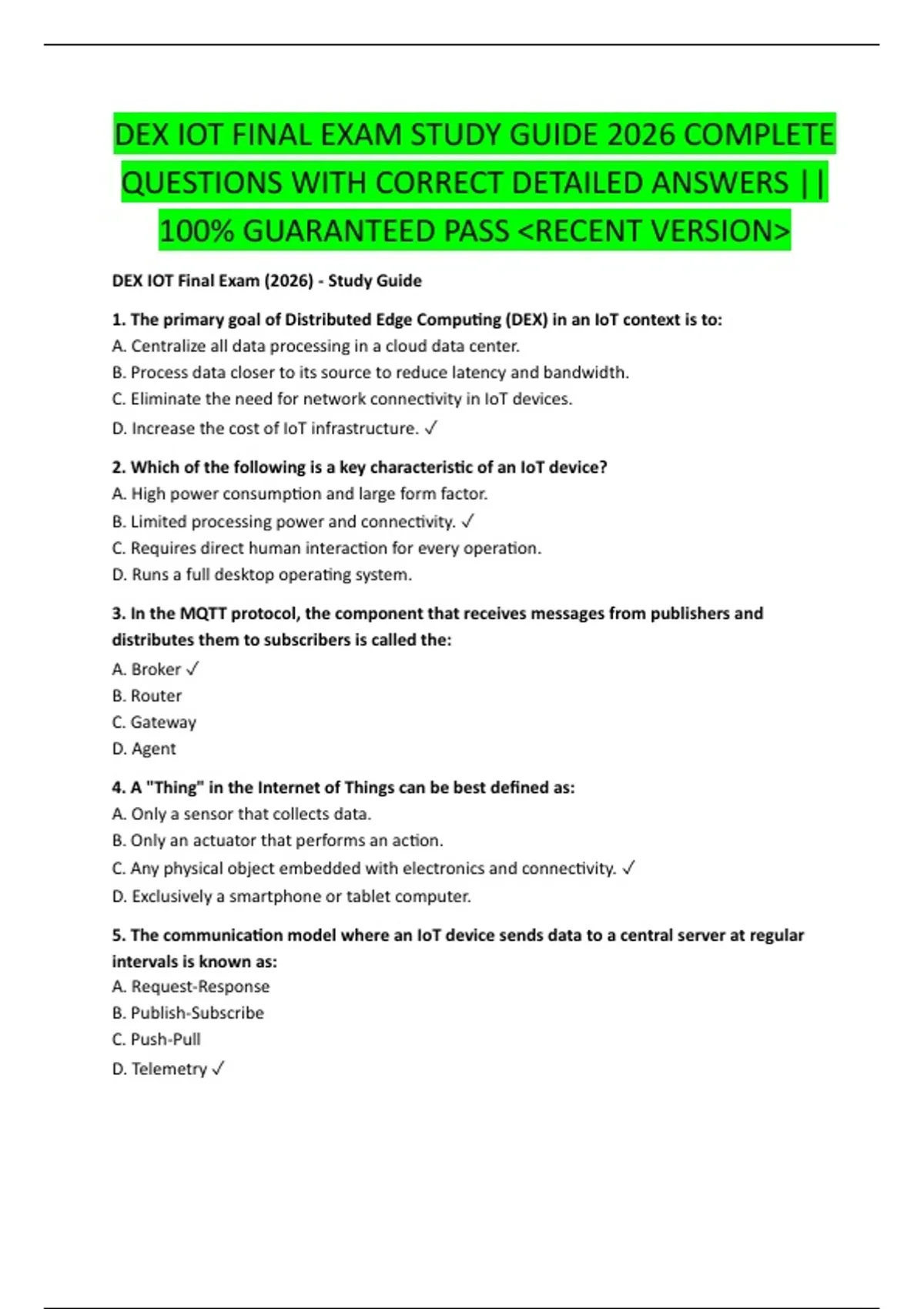 1. The primary goal of Distributed Edge Computing (DEX) in an IoT context is to: