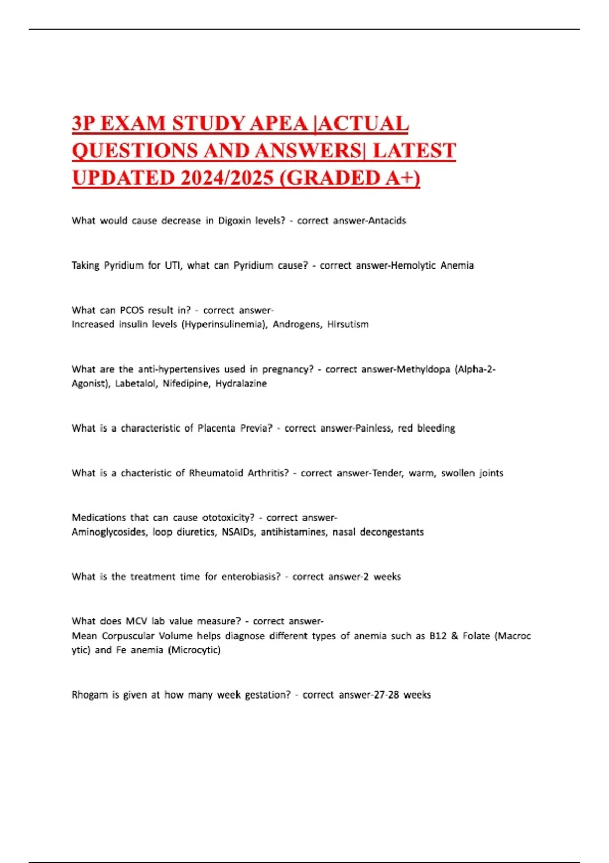 3P EXAM STUDY APEA -ACTUAL QUESTIONS AN...TEST UPDATED (GRADED A+)