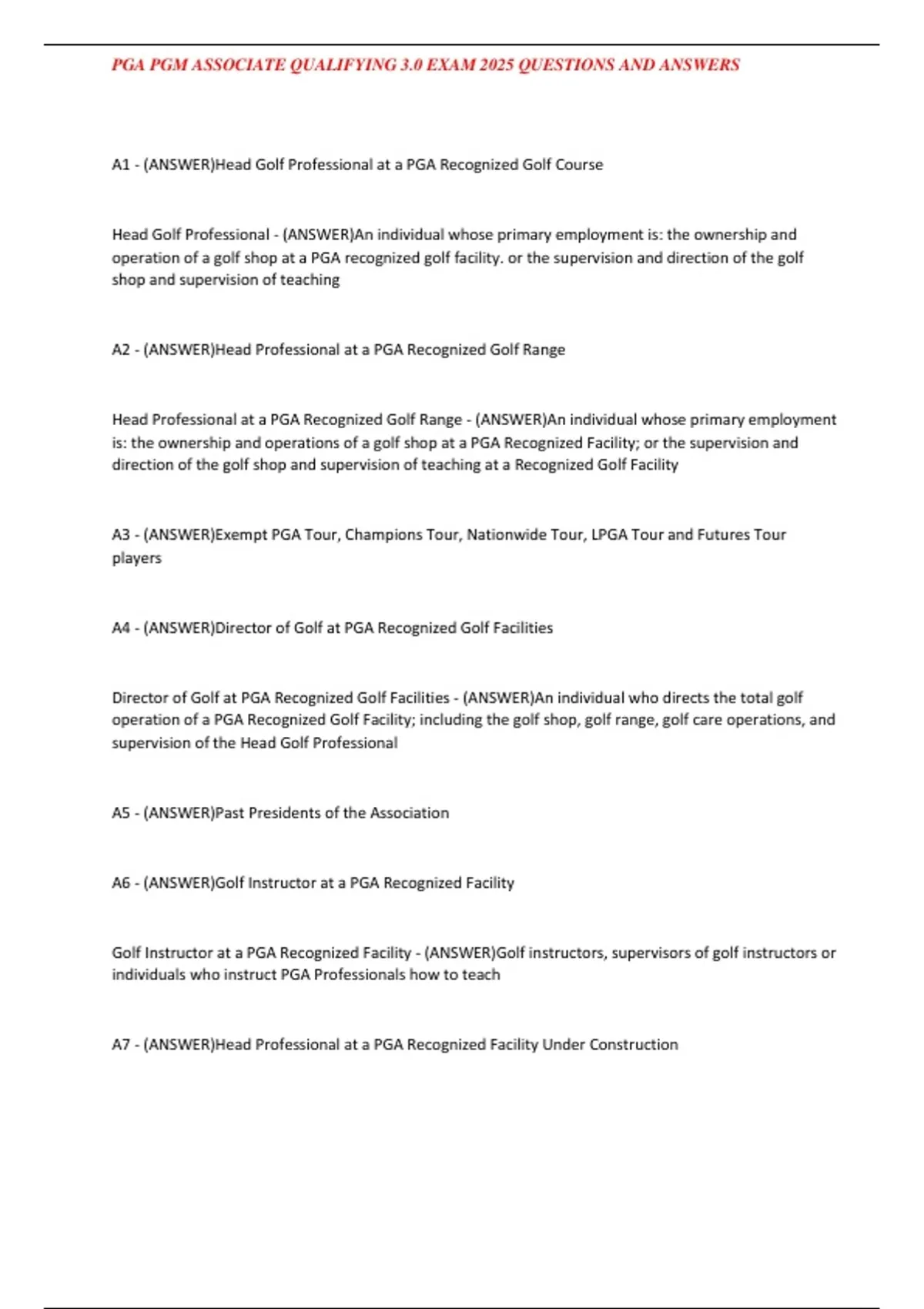 , PGA PGM ASSOCIATE QUALIFYING 3.0 EXAM 2025 QUESTIONS AND ANSWERS