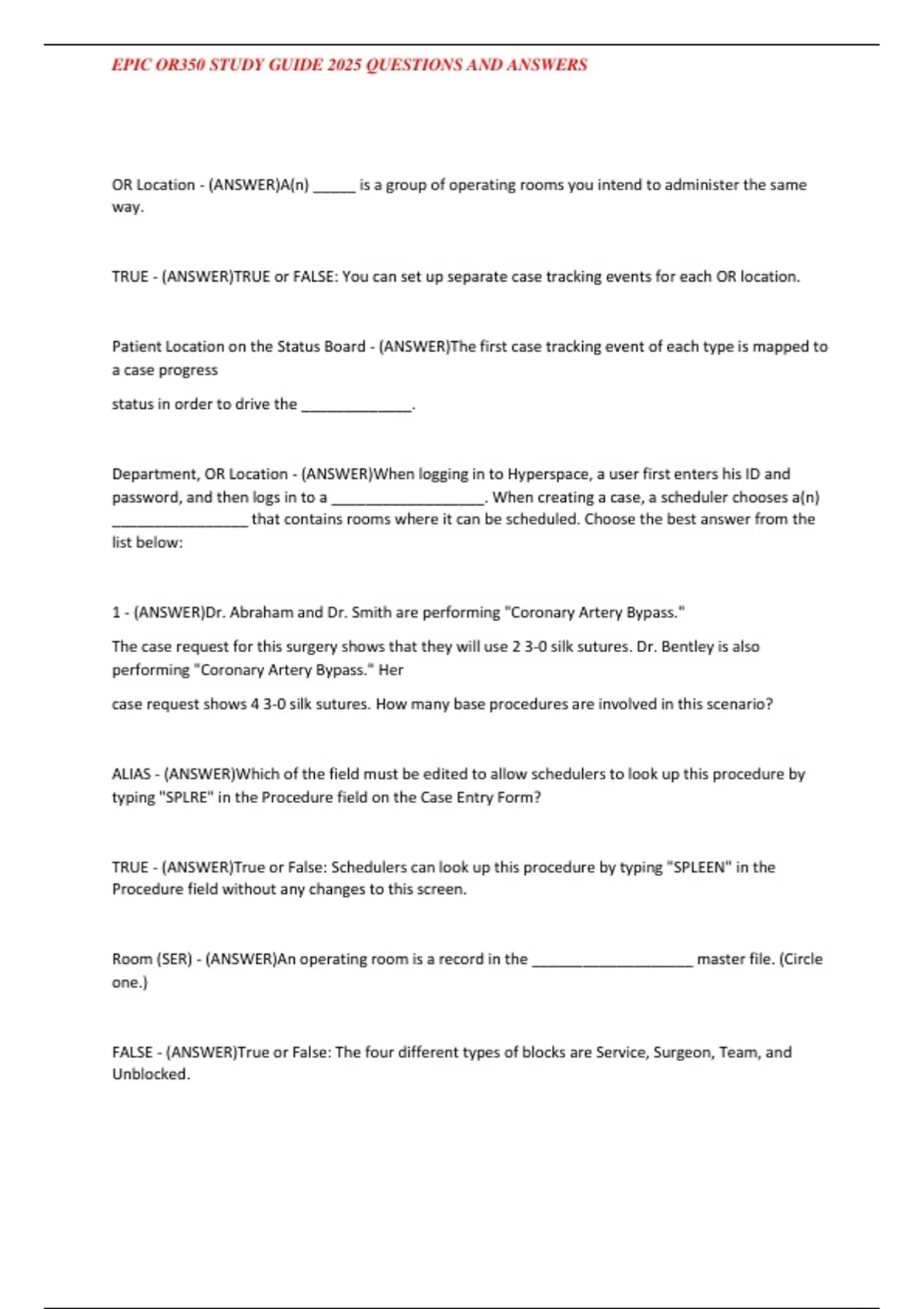 , EPIC OR350 STUDY GUIDE 2025 QUESTIONS AND ANSWERS