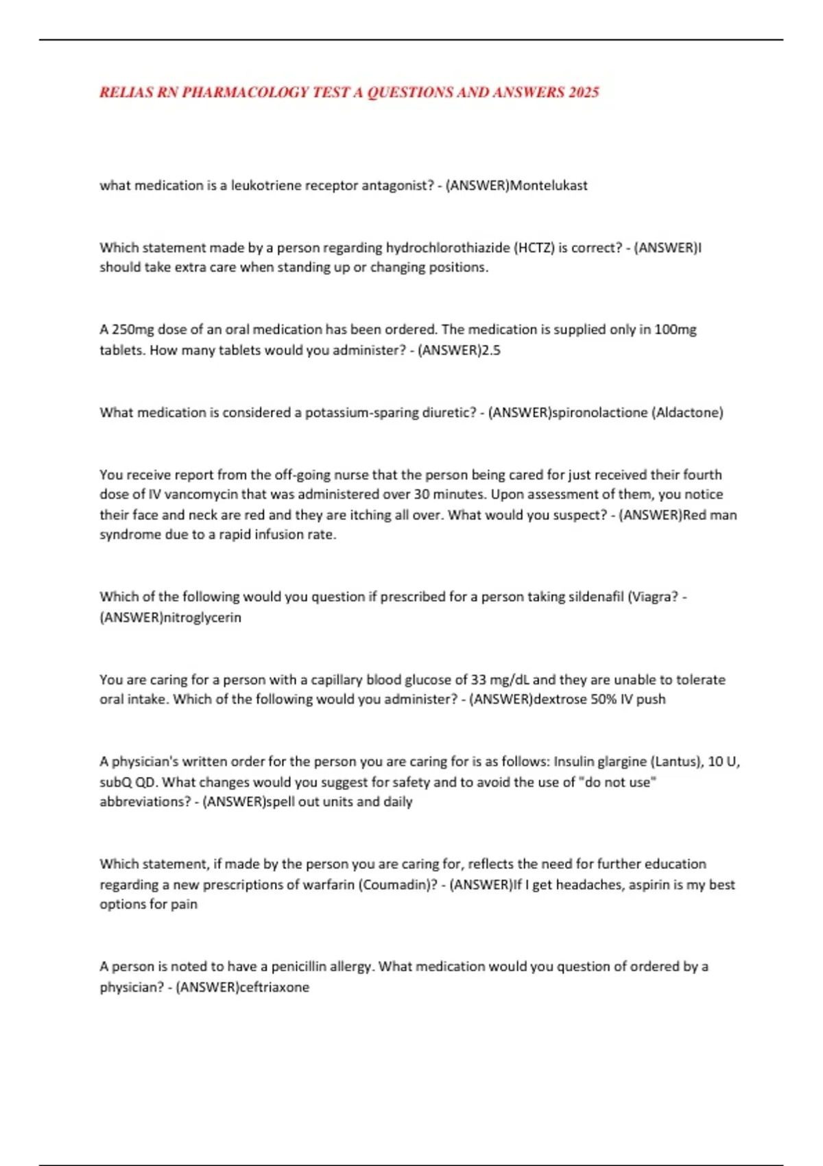 , RELIAS RN PHARMACOLOGY TEST A QUESTIONS AND ANSWERS 2025