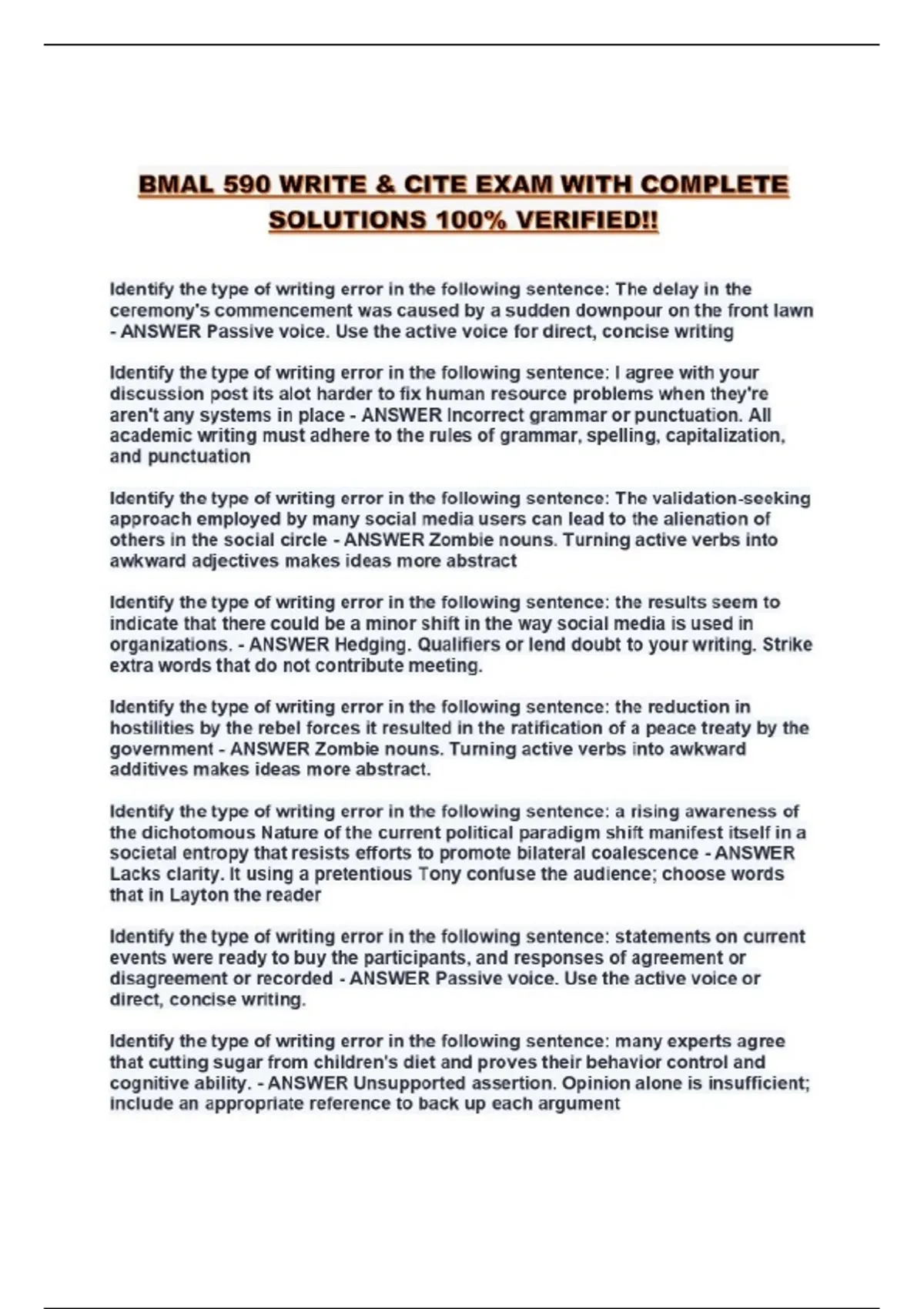 BMAL 590 WRITE & CITE EXAM WITH COMPLETE SOLUTIONS 100% VERIFIED!!...