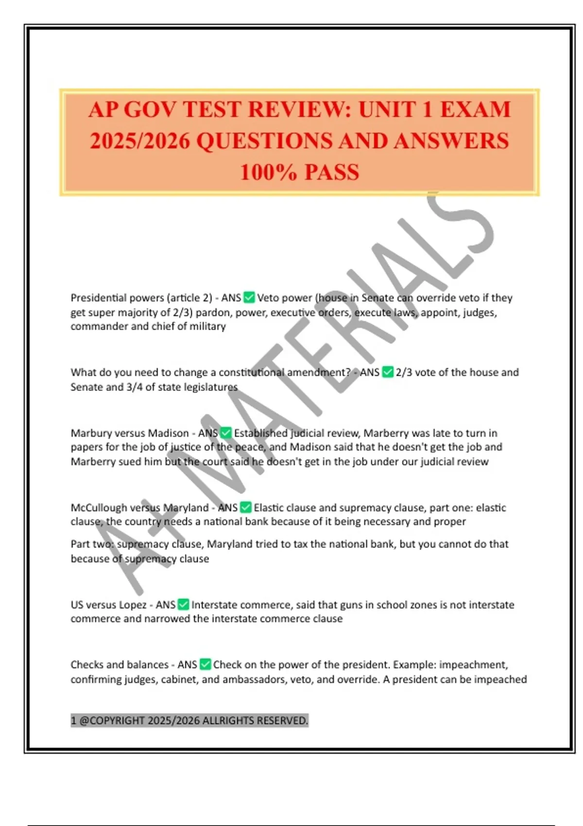 AP GOV TEST REVIEW: UNIT 1 EXAM